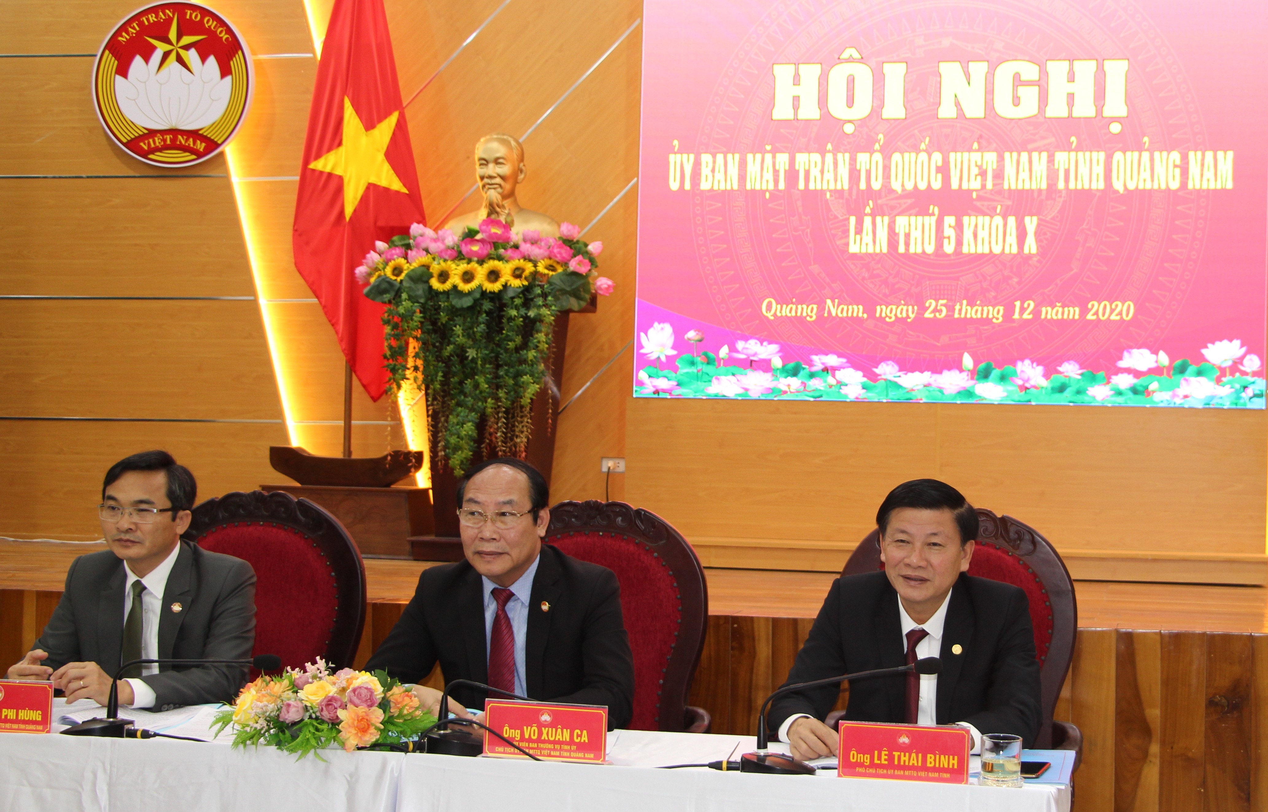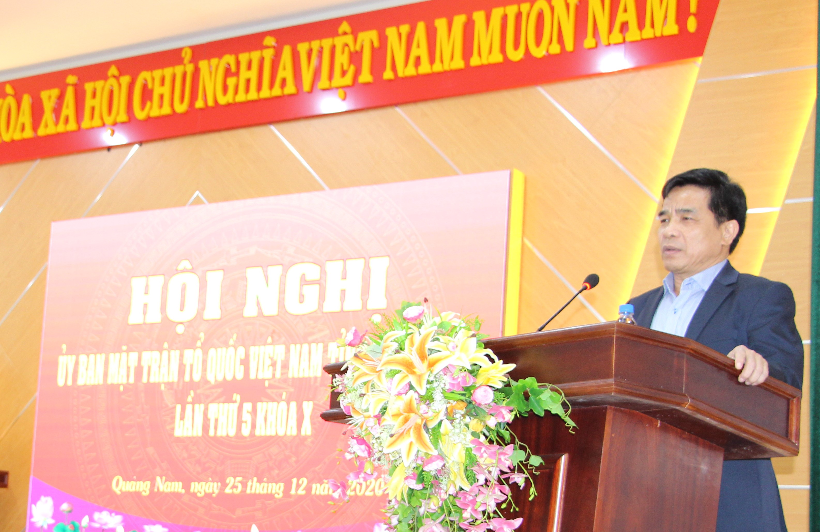 Đến dự và phát biểu chỉ đạo Hội nghị, đồng chí Lê Văn Dũng- Phó Bí thư Thường trực Tỉnh ủy đánh giá cao kết quả của Mặt trận năm 2020 đã cùng với Đảng bộ, chính quyền thực hiện tốt công tác phòng, chống đại dịch Covid-19 và khắc phục thiên tai, xây dựng nông thôn mới, đô thị văn minh, công tác giảm nghèo bền vững, thực hiện tốt hoạt động giám sát, phản biện góp phần xây dựng Đảng, xây dựng chính quyền ngày càng vững mạnh. Năm 2021, là năm diễn ra cuộc bầu cử Quốc hội và HĐND các cấp, là năm diễn ra Đại hội đại biểu toàn quốc lần thứ XIII của Đảng, năm đầu tiên thực hiện Nghị quyết Đại hội đại biểu Đảng bộ tỉnh lần thứ XXII với nhiều thuận lợi và khó khăn, thách thức, đồng chí đề nghị Mặt trận các cấp cùng với Đảng, chính quyền tập trung thực hiện những nội dung trọng tâm sau: Tiếp tục tuyên truyền vận động trong nhân dân nâng cao tinh thần phòng, chống dịch Covid-19, không chủ quan; Tuyên truyền trong các tầng lớp nhân dân về Nghị quyết Đại hội Đảng các cấp nhằm tạo sự đồng thuận xã hội khi triển khai thực hiện; Tiếp tục phát động các phong trào thi đua yêu nước, trong đó tập trung thực hiện Chương trình mục tiêu quốc gia xây dựng nông thôn mới, công tác dân tộc và miền núi; chương trình giảm nghèo bền vững; Tổ chức thành công cuộc bầu cử Quốc hội và đại biểu HĐND các cấp. trong đó, Mặt trận tập trung tổ chức tốt các hội nghị hiệp thương giới thiệu, lựa chọn những người tiêu biểu ứng cử đại biểu Quốc hội và HĐND các cấp; Tổ chức tốt hoạt động giám sát và phản biện xã hội, tập trung giám sát những vấn đề nhân dân quan tâm, bức xúc; giám sát việc giải quyết các nội dung sau khi tiếp dân; các chương trình dự án phát triển kinh tế- xã hội. Nghiên cứu tổ chức phản biện các dự án phát triển miền núi...