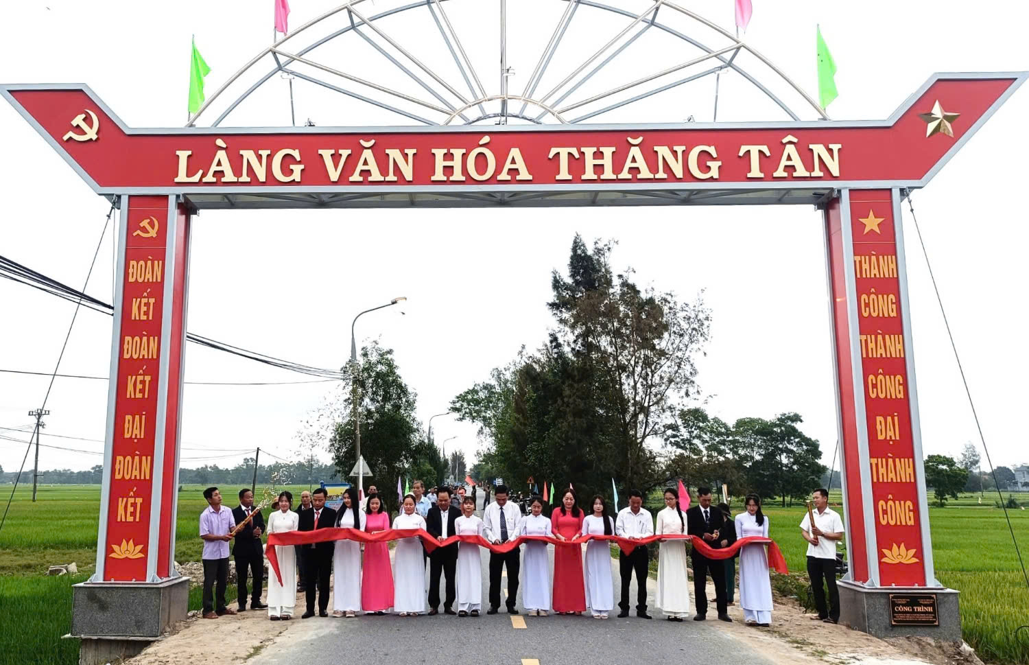 Đây là công trình chào mừng kỷ niệm 50 năm giải phóng thành phố Tam Kỳ và tỉnh Quảng Nam (24/03/1975 - 24/03/2025), 95 năm thành lập Đảng bộ tỉnh Quảng Nam (28/03/1930 - 28/03/2025). Công trình cổng làng thôn Thăng Tân khởi công đầu tháng 1/2025 đến nay đã hoàn thành với chiều cao 5,7m, chiều rộng 9m. Tổng kinh phí xây dựng 350 triệu đồng từ sự đóng góp của bà con nhân dân trong thôn và những người con xa quê. Công trình hoàn thành đưa vào sử dụng trong niềm vui mừng phấn khởi của bà con nhân dân. Qua đó, khẳng định tinh thần đoàn kết, giữ gìn, phát huy bản sắc văn hóa dân tộc trong cộng đồng dân cư, chung tay hoàn thành các tiêu chí trong xây dựng khu dân cư nông thôn mới kiểu mẫu.
