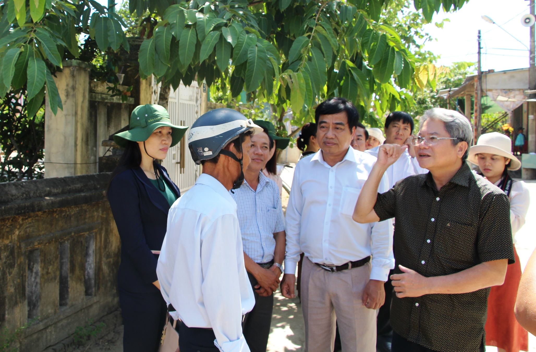 Đoàn công tác trao đổi với người dân ở thôn Bến Đền Tây