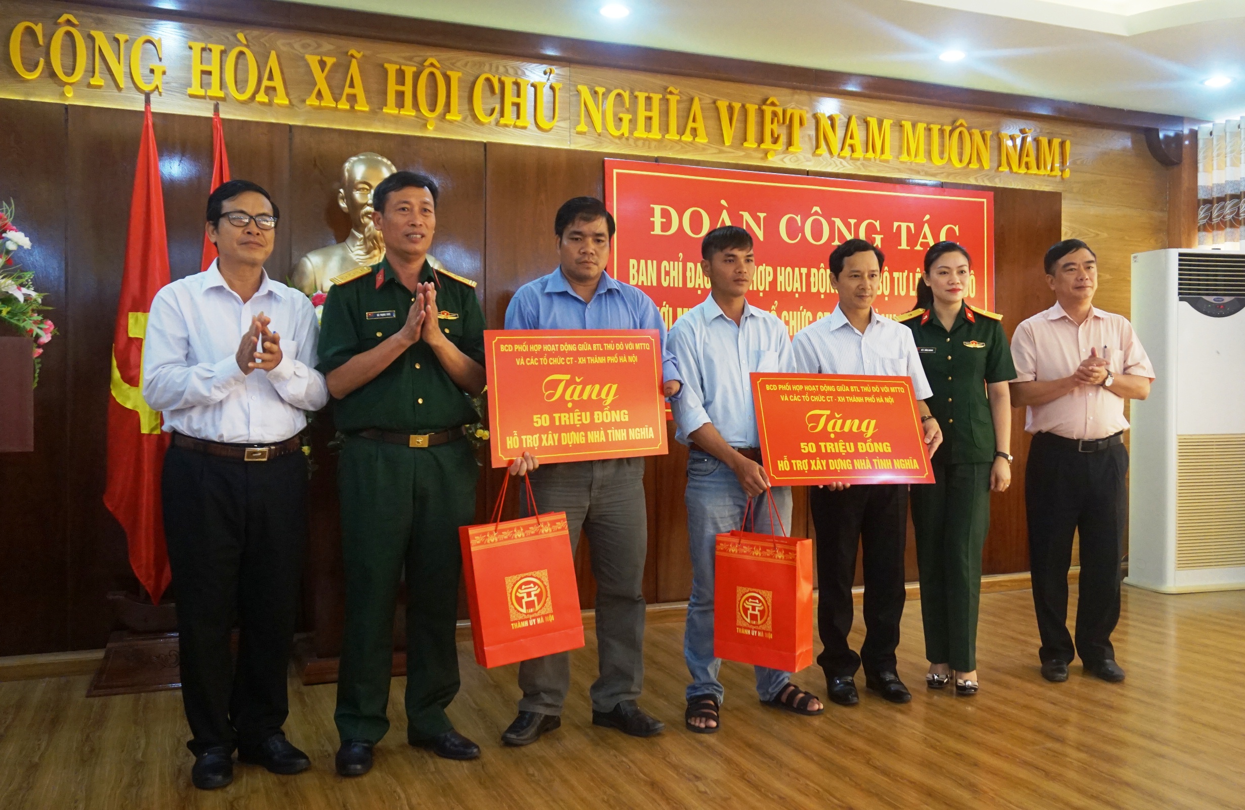 Hôm qua (11.7), tại hội trường cơ quan Uỷ ban MTTQ tỉnh, Đoàn công tác của Ban chỉ đạo phối hợp hoạt động giữa Bộ Tư lệnh Thủ đô với MTTQ và các tổ chức chính trị xã hội Thành phố Hà Nội do đồng chí Bùi Tuấn Ngọc - Phó Trưởng Ban Dân vận thành phố Hà Nội làm trưởng đoàn đã trao tặng 400 triệu đồng xây dựng 08 nhà tình nghĩa cho các gia đình chính sách ở huyện Phú Ninh, Tiên Phước, Thăng Bình, Đông Giang, mỗi huyện 02 nhà, mỗi nhà 50 triệu đồng.