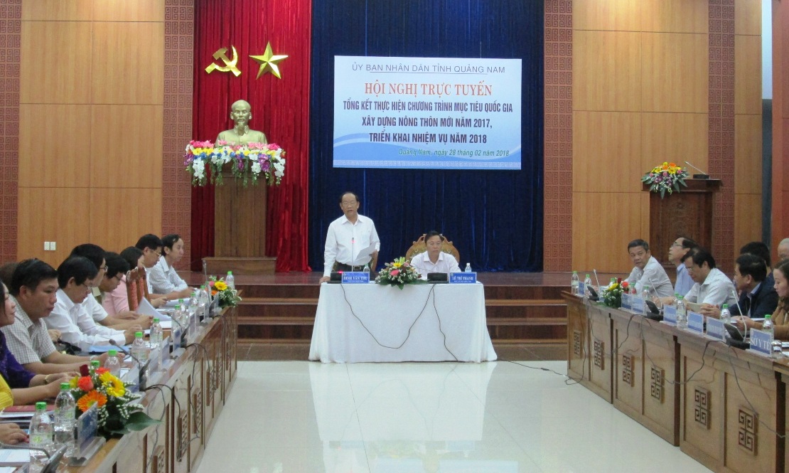 Sáng 28.2, Chủ tịch UBND tỉnh Đinh Văn Thu cùng Phó Chủ tịch UBND tỉnh Lê Trí Thanh chủ trì hội nghị trực tuyến với lãnh đạo 18 huyện, thị xã, thành phố nhằm đánh giá tình hình thực hiện Chương trình mục tiêu quốc gia xây dựng nông thôn mới (NTM) năm 2017 và triển khai những mục tiêu, giải pháp trọng tâm trong năm 2018. Tham dự tại điểm cầu UBND tỉnh có đồng chí Võ Hồng - Ủy viên Ban Thường vụ Tỉnh ủy, Phó Chủ tịch HĐND tỉnh và đại diện các sở ban ngành, hội đoàn thể.