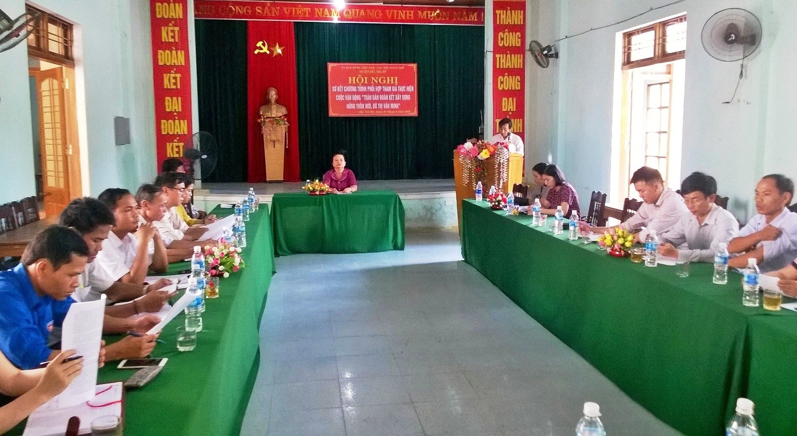 Theo báo cáo tại hội nghị, qua gần 03 năm triển khai thực hiện Cuộc vận động. Ủy ban MTTQ Việt Nam và các hội đoàn thể huyện đã tập trung lãnh đạo, chỉ đạo, hướng dẫn tổ chức triển khai thực hiện các nội dung trong chương trình phối hợp gắn với việc thực hiện nhiệm vụ chuyên môn của từng cơ quan. Tổ chức tuyên truyền, vận động nhằm nâng cao nhận thức cho cán bộ, hội viên, đoàn viên và các tầng lớp nhân dân. Phối hợp triển khai thực hiện có hiệu quả 05 nội dung của Cuộc vận động; xây dựng các mô hình nhằm góp phần thực hiện có hiệu quả Cuộc vận động trên địa bàn huyện. Mặt trận và các Hội đoàn thể từ huyện đến cơ sở đã tổ chức 137 buổi tuyên truyền, với trên 10.960 lượt người tham gia. Đặc biệt đã phối hợp tổ chức thành công Hội thi tuyên truyền Cuộc vận động “Toàn dân đoàn kết xây dựng nông thôn mới, đô thị văn minh” và phát động chiến dịch “Toàn dân chung tay xây dựng nông thôn mới”, thu hút đông đảo các tầng lớp nhân dân tham gia; tuyên truyền, vận động hội viên, đoàn viên và Nhân dân giúp nhau phát triển kinh tế, thoát nghèo bền vững bằng những việc làm cụ thể, thiết thực như xây dựng các mô hình giúp nhau thoát nghèo, hỗ trợ kỹ thuật, cây con, giống, ngày công giúp các hộ nghèo vươn lên thoát nghèo; tập trung cải tạo vườn tạp, phát triển kinh tế vườn, kinh tế trang trại.
