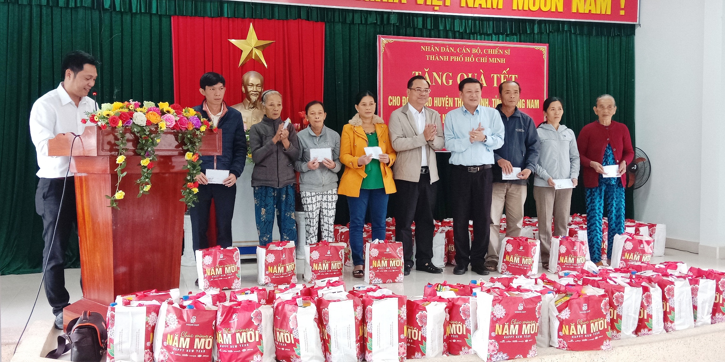 Đoàn công tác của Ủy ban  MTTQ  Việt Nam thành phố Hồ Chí Minh trao quà Tết cho các hộ dân ở huyện Thăng Bình