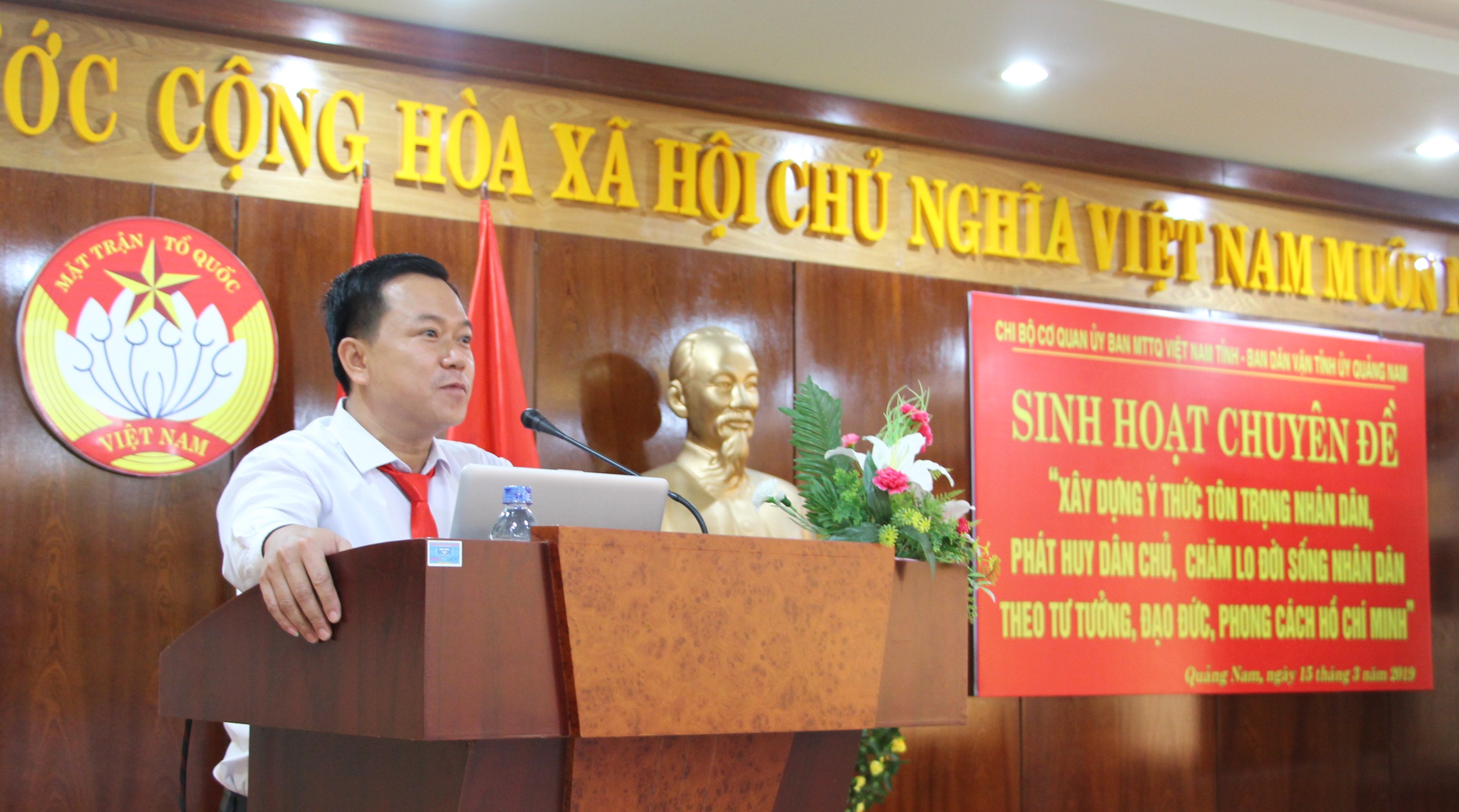 Đồng chí Nguyễn Thị Hà- Uỷ viên Ban Thường vụ, Chủ nhiệm Uỷ ban kiểm tra thay mặt Đảng uỷ khối các cơ quan đến tham dự. Thạc sĩ Trần Ngọc Nhiều- Giảng viên Trường Chính trị tỉnh trực tiếp truyền đạt Chuyên đề.