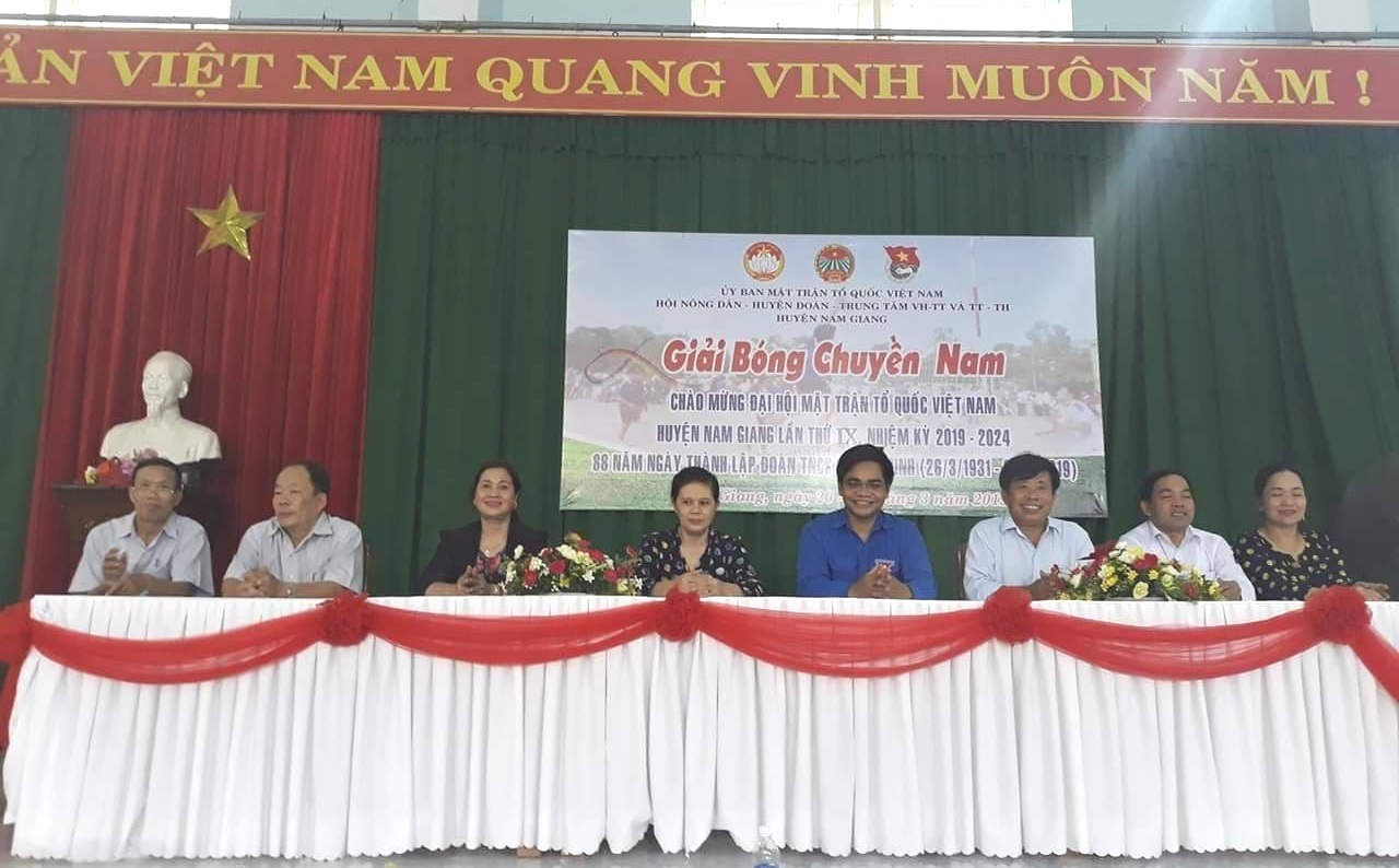 Ủy ban MTTQ Việt Nam huyện Nam Giang phối hợp với Trung tâm VH-TT&TT-TH, Đoàn Thanh Niên, Hội Nông dân huyện tổ chức giải bóng chuyền nam cho 12 xã, thị trấn chào mừng Đại hội Đại biểu MTTQ Việt Nam huyện lần thứ IX, nhiệm kỳ 2019 - 2024 và kỷ niệm 88 năm ngày thành lập Đoàn TNCS Hồ Chí Minh (26/3/1931 – 26/3/2019) và Giải Bông Lúa Vàng Hội Nông dân diễn ra trong 2 ngày 20 – 21/3/2019.