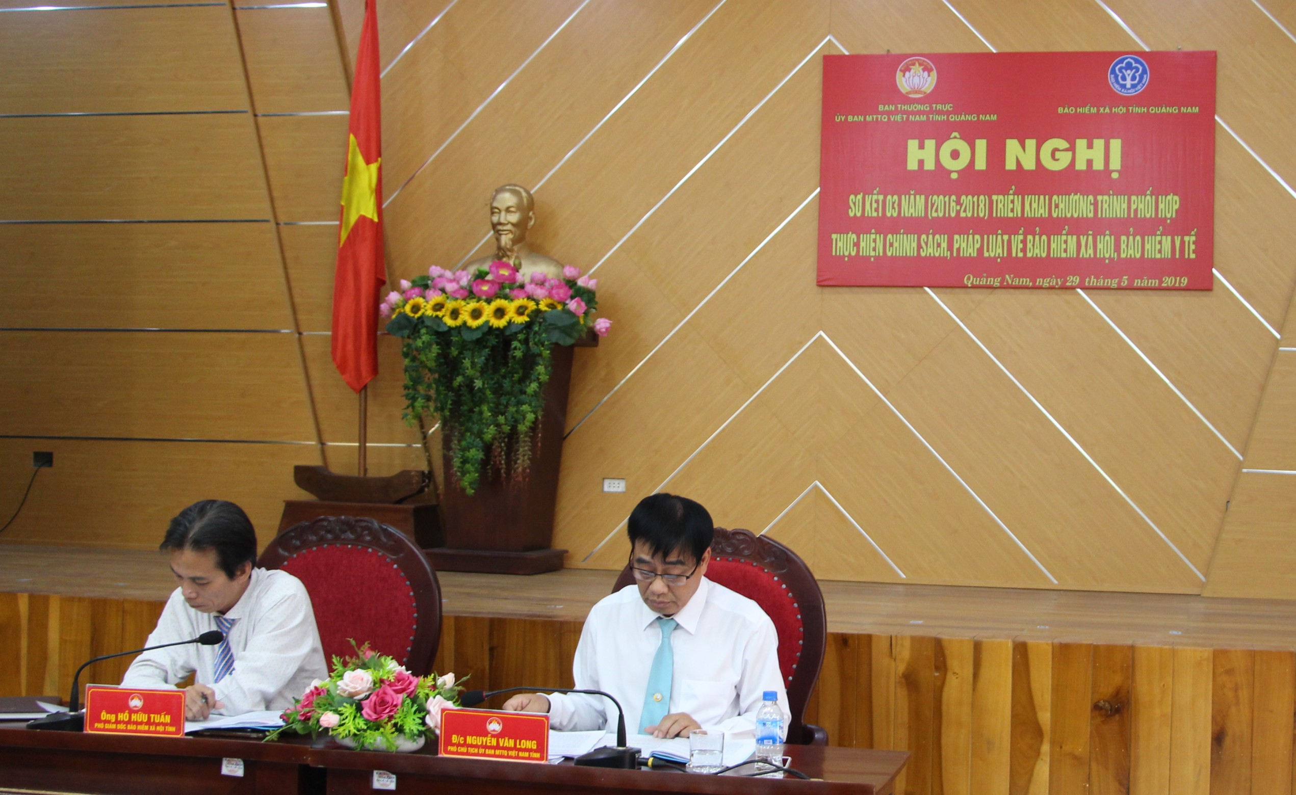 Tham dự hội nghị có ông Nguyễn Phước Khanh- Phó Ban Dân vận Tỉnh ủy, đại diện Ban Thường trực Ủy ban MTTQ Việt Nam các huyện, thị xã, thành phố, các tổ chức tôn giáo trên địa bàn tỉnh. Ông Nguyễn Văn Long- Phó Chủ tịch Ủy ban MTTQ Việt Nam tỉnh và ông Hồ Hữu Tuấn- Phó Giám đốc BHXH tỉnh đồng chủ trì Hội nghị.