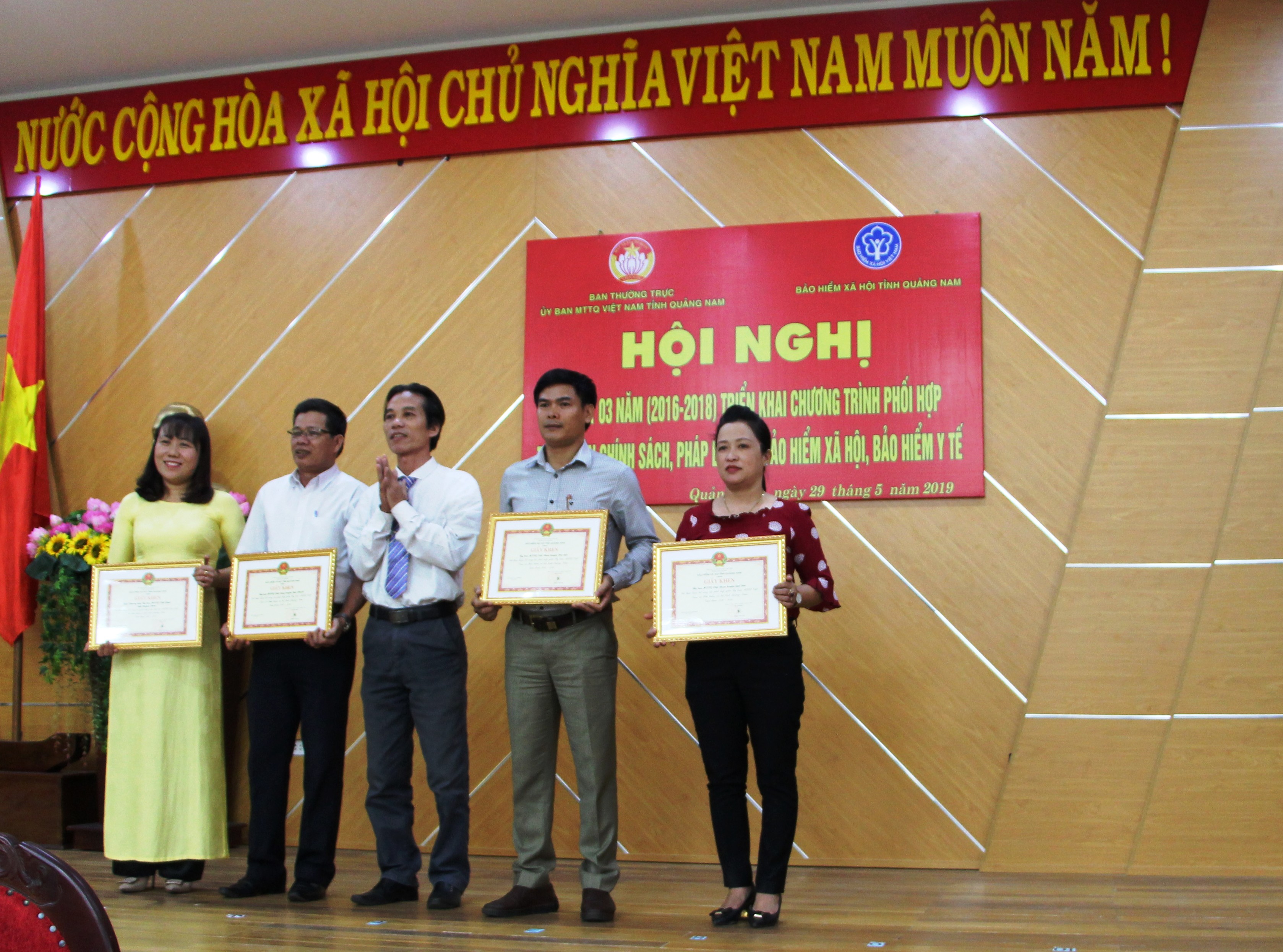Tại hội nghị Ban Thường trực Ủy ban MTTQ Việt Nam tỉnh và Bảo hiểm xã hội tỉnh cũng đã biểu dương, khen thưởng 05 tập thể và 11 cá nhân có thành tích xuất sắc trong công tác tuyên truyền, vận động nhân dân tham gia BHXH, BHYT trong 3 năm qua.