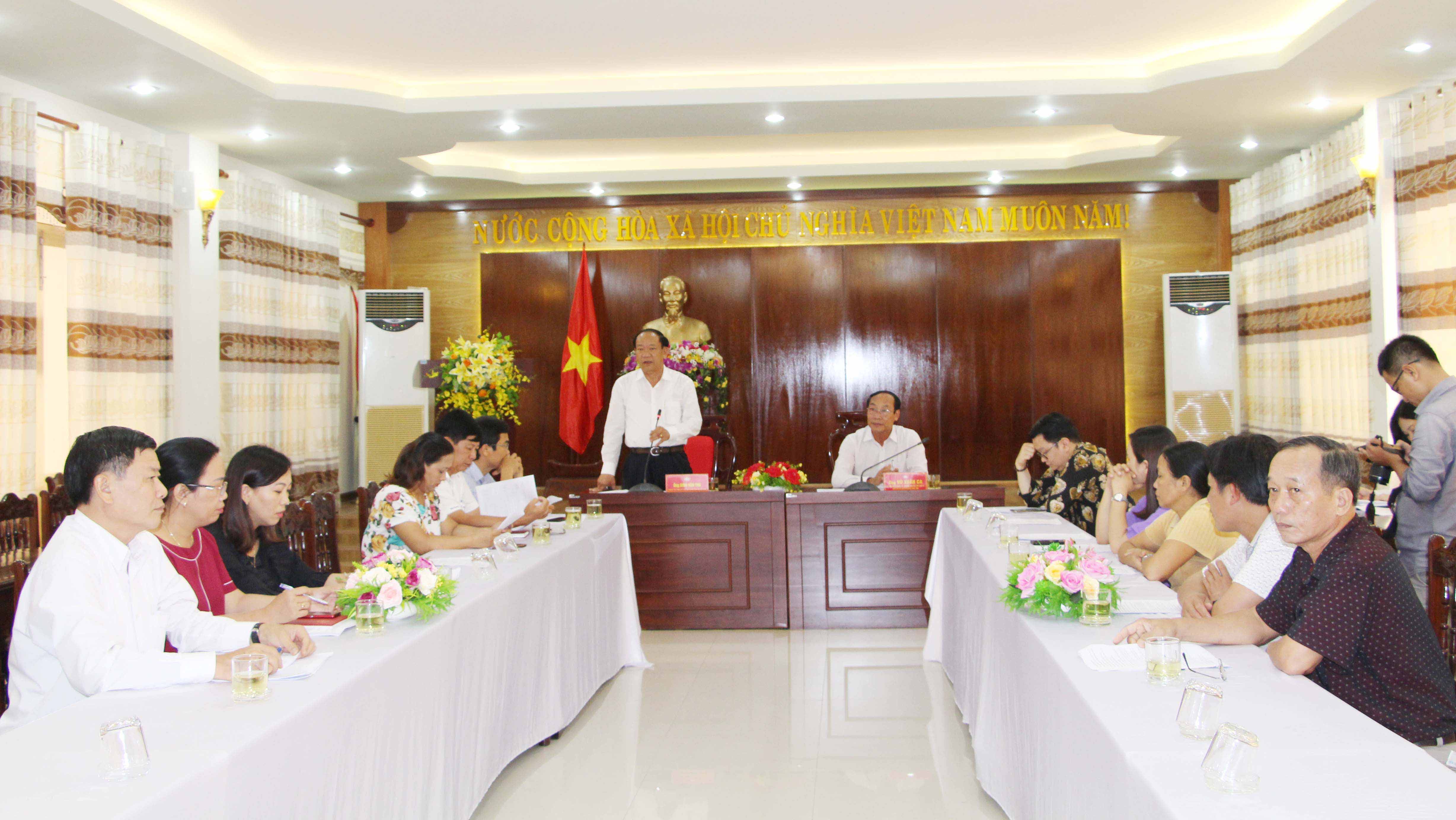 Ông Võ Xuân Ca, UVBTV, Trưởng ban Dân vận Tỉnh ủy, Chủ tịch Ủy ban MTTQ Việt Nam tỉnh cùng trao đổi và thông tin một số nội dung cho đoàn đại biểu trước khi tham dự Đại hội đại biểu toàn quốc Mặt trận Tổ quốc Việt Nam lần thứ IX, nhiệm kỳ 2019 - 2024.