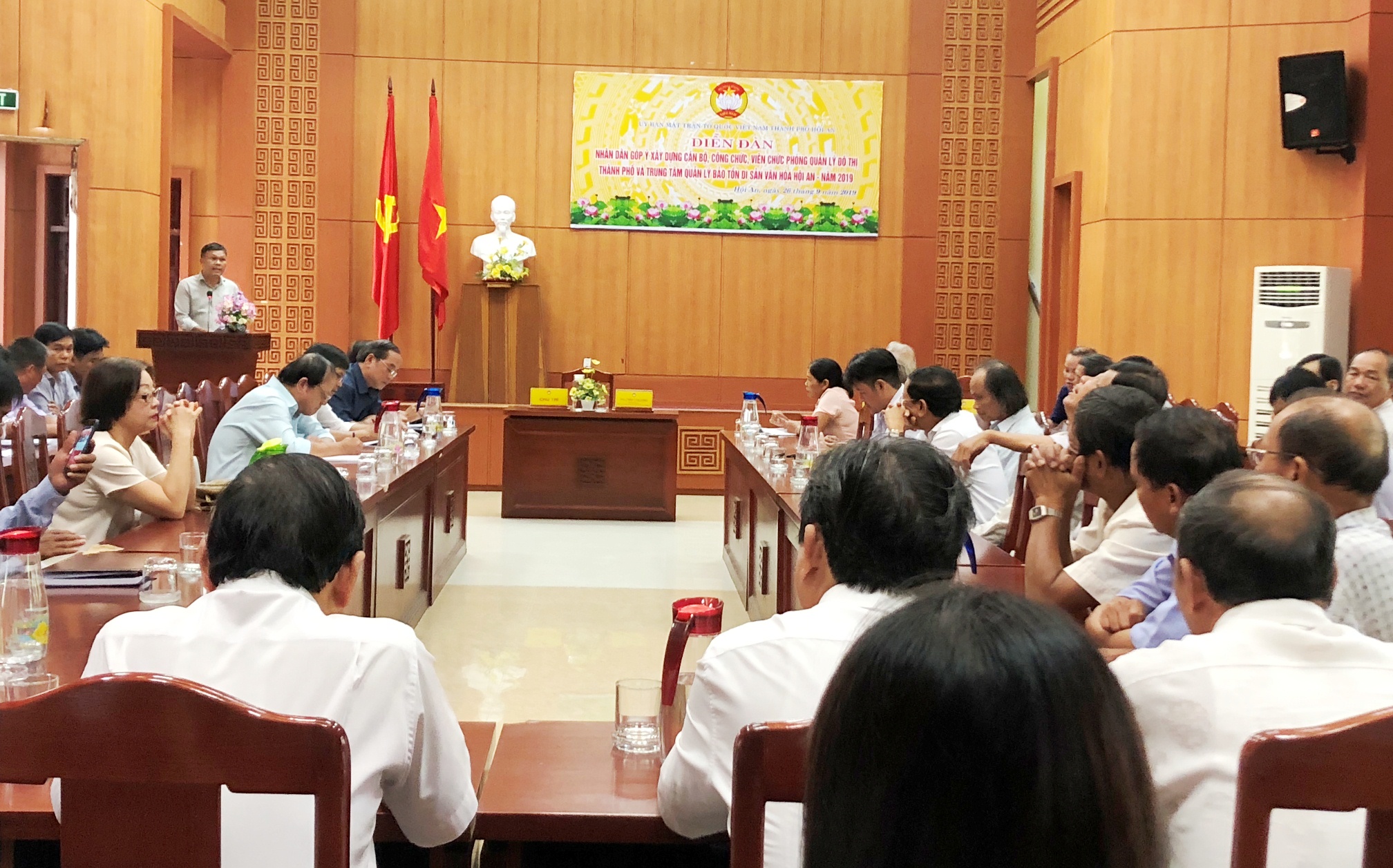 Ngày 26/9, Uỷ ban MTTQ Việt Nam thành phố Hội An tổ chức tổ chức Diễn đàn “Nhân dân góp ý xây dựng cán bộ, công chức, viên chức của Phòng Quản lý đô thị và Trung tâm bảo tồn di sản thành phố Hội An” năm 2019.