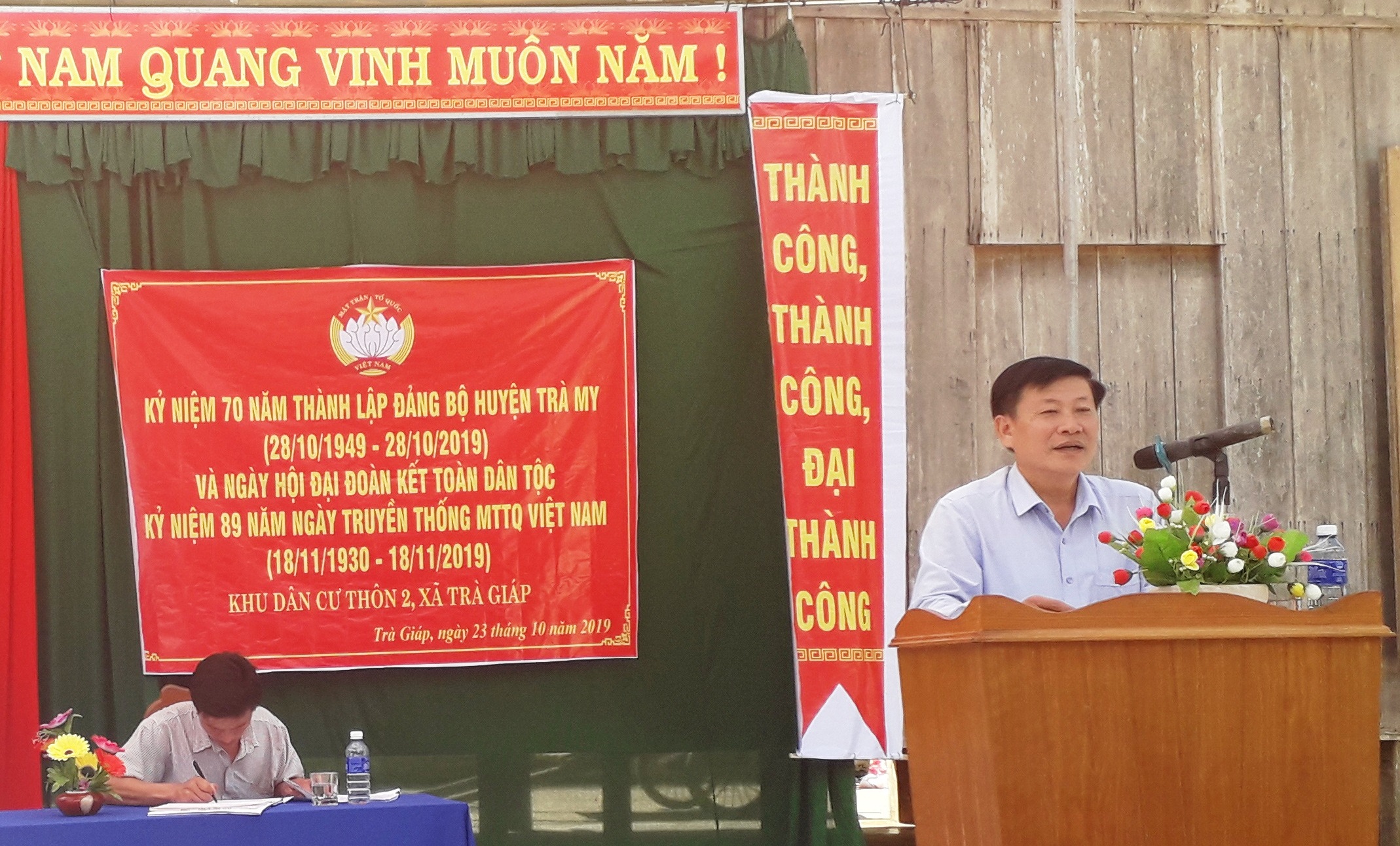 Đặc biệt, năm nay Ban Thường trực Ủy ban MTTQ Việt Nam huyện đã chủ động hiệp thương thống nhất với các Hội, đoàn thể huyện về tham dự Ngày hội tại tất cả các khu dân cư trên địa bàn huyện để kết hợp tuyên truyền kỷ niệm 70 năm thành lập Đảng bộ huyện Trà My (28/10/1949-28/10/2019) và Ngày hội Đại đoàn kết toàn dân tộc nhân kỷ niệm 89 năm ngày truyền thống MTTQ Việt Nam (18/11/1930-18/11/2019).