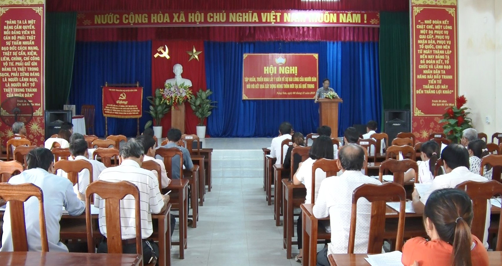 Sau buổi tập huấn, 2.511 phiếu được cấp cho các thôn (mẫu phiếu số 1) để tiến hành tổ chức lấy ý kiến của người dân, tuyên truyền, vận động và hướng dẫn nhân dân tham gia ý kiến về sự hài lòng đối với kết quả xây dựng nông thôn mới. Theo đó, tỷ lệ lấy phiếu sự hài lòng của người dân phải thực hiện được ít nhất 70% số hộ gia đình của xã. Trong đó, từ câu hỏi số 01 đến câu 18 phải đạt trên 80% số hộ được lấy ý kiến hài lòng; câu hỏi số 19 phải đạt trên 90% số hộ được lấy ý kiến hài lòng.