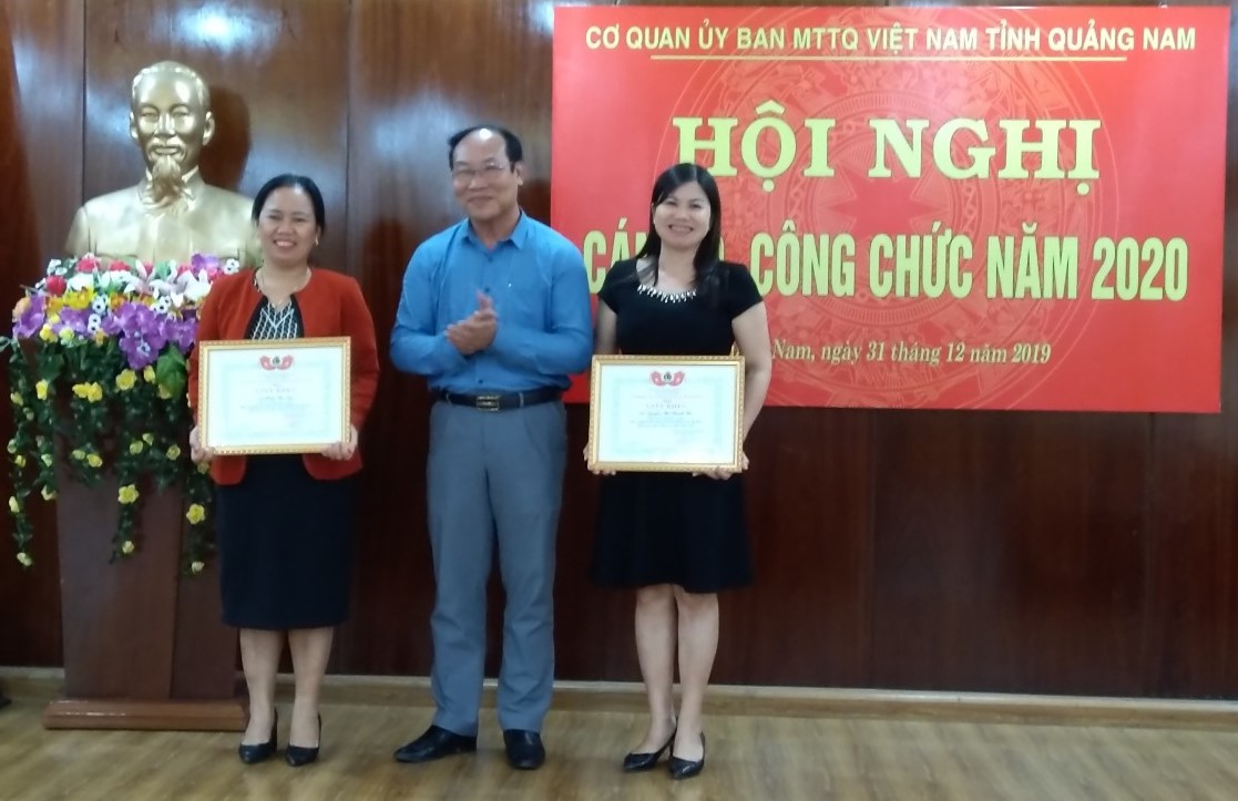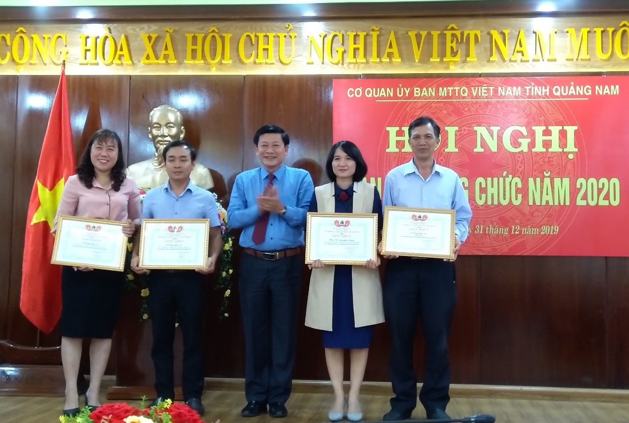 Chủ tịch Uỷ ban MTTQ Việt Nam tỉnh Võ Xuân Ca tặng Bằng khen của Ủy ban MTTQ Việt Nam tỉnh cho các cá nhân