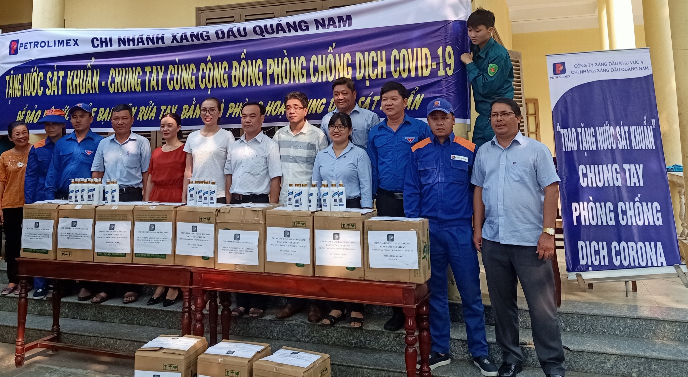 trao biển ủng hộ 60 triệu đồng và 100 chai nước sát khuẩn