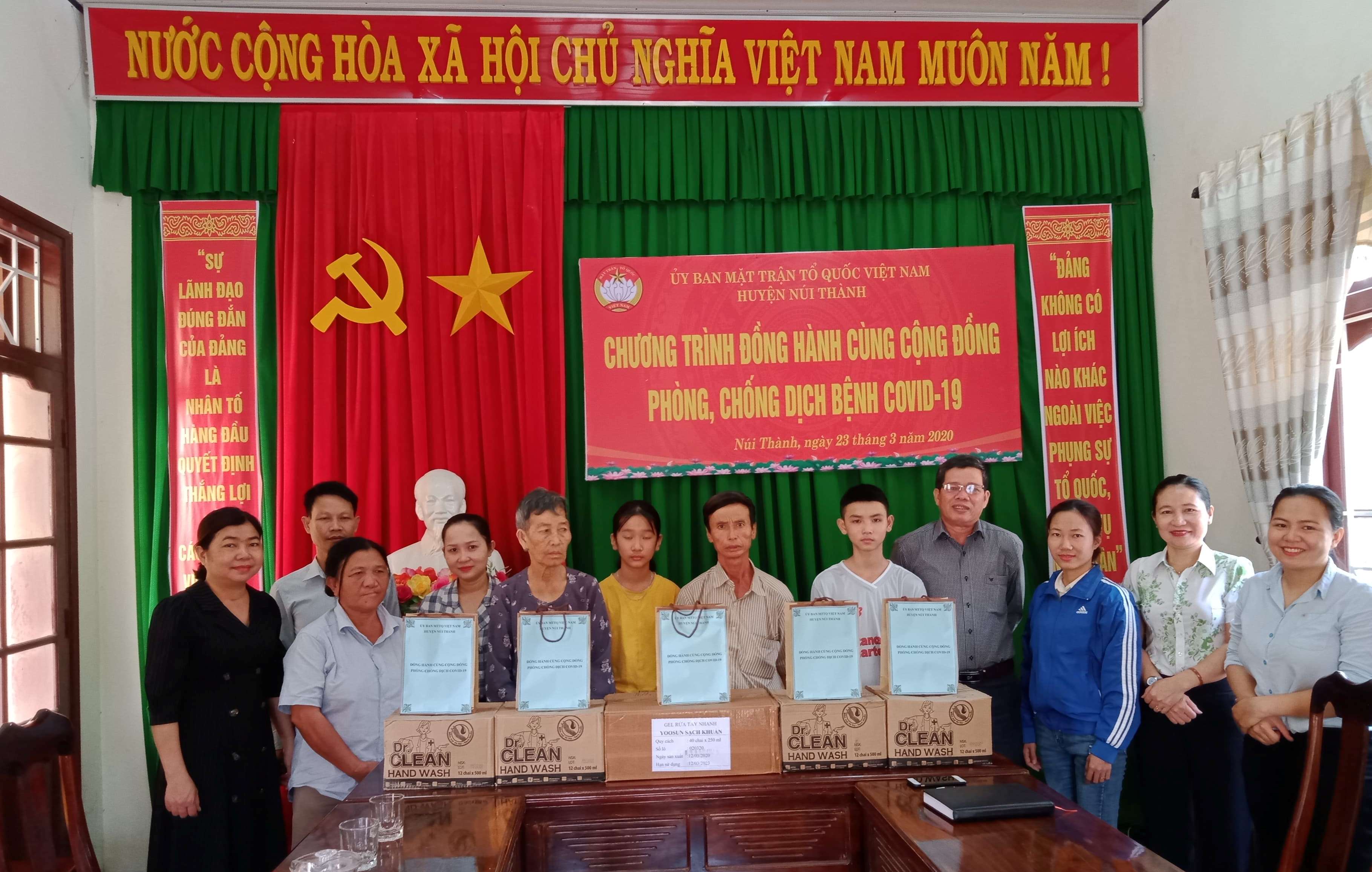 Hưởng ứng Lời kêu gọi của Đoàn Chủ tịch Ủy ban Trung ương MTTQ Việt Nam, ngày 23/3/2020, Ban Thường trực Ủy ban MTTQ Việt Nam huyện Núi Thành tổ chức Chương trình đồng hành cùng cộng đồng phòng, chống dịch bệnh viêm đường hô hấp cấp do virus corona chủng mới (Covid-19) gây ra và đã đón nhận được sự ủng hộ các tầng lớp nhân dân, các chức sắc, chức việc và đồng bào theo đạo trên địa bàn huyện. Qua đó, Ban Thường trực Ủy ban MTTQ Việt Nam huyện đã tổ chức trao tặng 150 suất quà (gồm nước sát khuẩn, xà phòng rửa tay và nhu yếu phẩm) đến 150 hộ nghèo, khó khăn trên địa bàn 4 xã của huyện với tổng số tiền gần 33 triệu đồng. Với tinh thần “mỗi người dân là một chiến sỹ trên mặt trận phòng chống dịch bệnh” như lời phát động, từ những món quà “cho đi và nhận lại” này đã thể hiện tinh thần đoàn kết, tương thân, tương ái, chung tay góp sức đẩy lùi dịch bệnh.