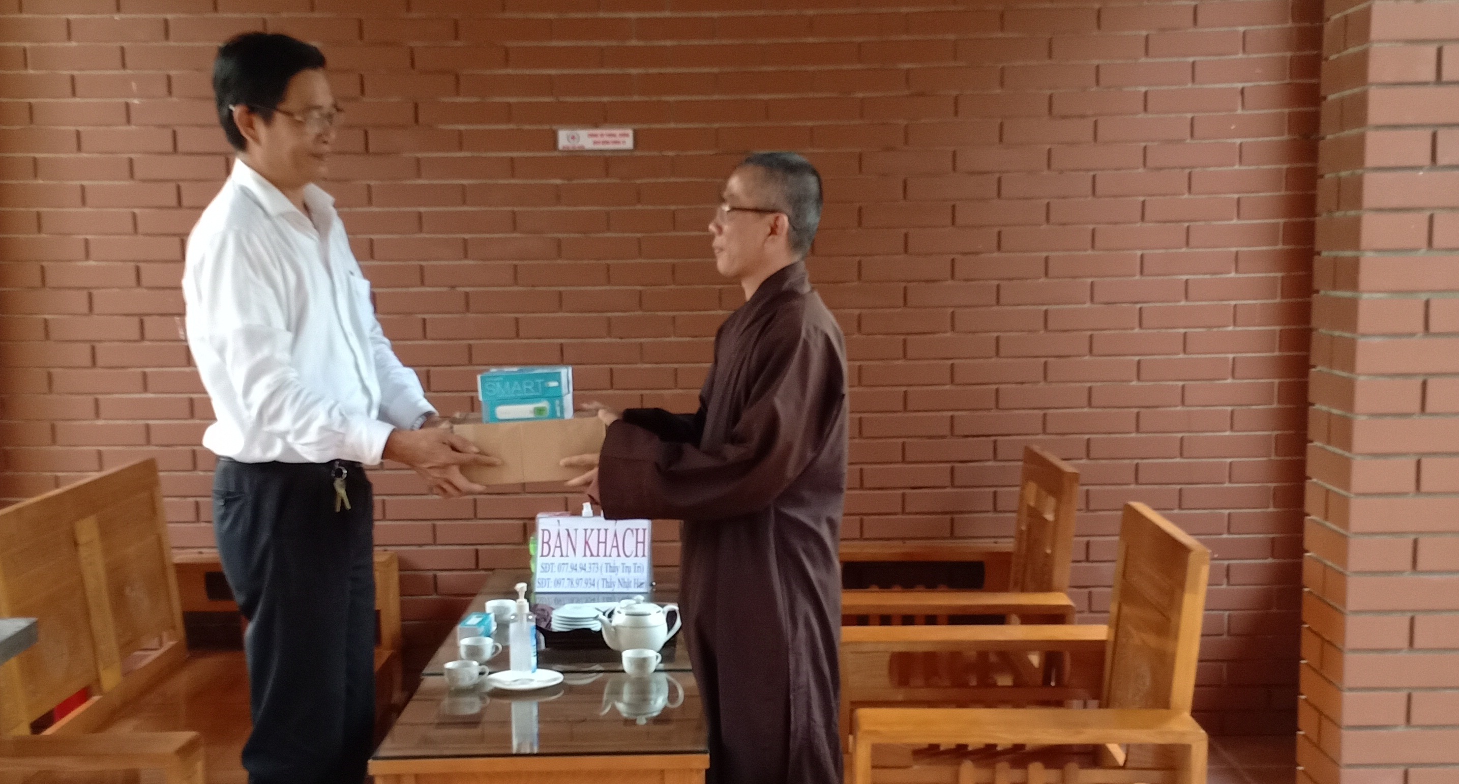 Đại đức Thích Pháp Chương- Chùa Tiên Mỹ trao ủng hộ 10 máy đo thân nhiệt trị giá 18 triệu đồng