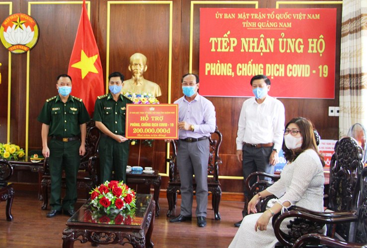 Ông Hoàng Văn Mẫn- Chính ủy BCH Bộ đội Biên phòng tỉnh Quảng Nam tiếp nhận 200 triệu đồng từ Uỷ ban MTTQ Việt Nam tỉnh -nguồn ủng hộ phòng chống COVID-19