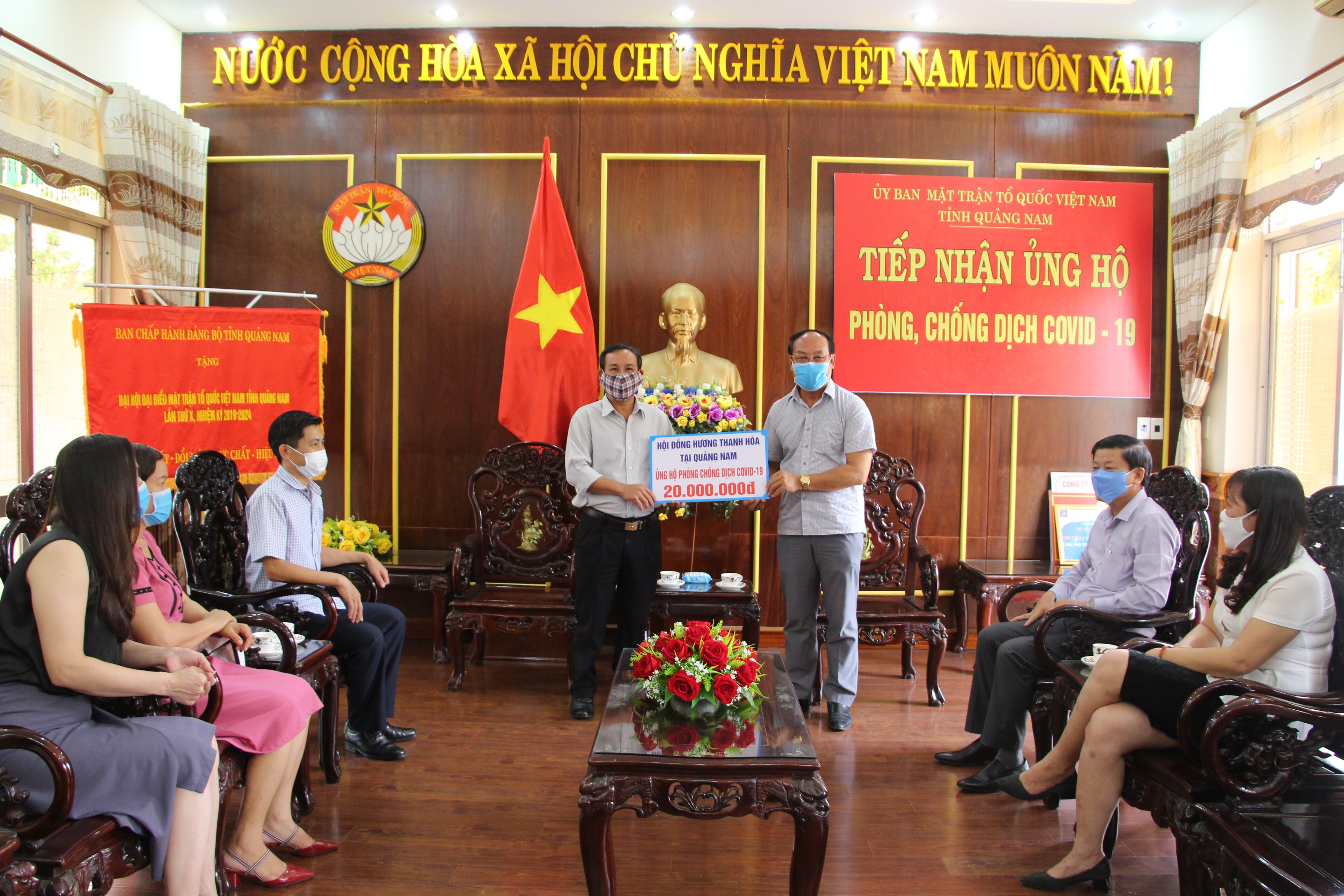 * Ngày 07/4/2020: Ông Võ Xuân Ca- UVBTV, Chủ tịch Ủy ban MTTQ Việt Nam tỉnh đã tiếp nhận 20 triệu đồng từ Hội đồng hương Thanh hóa tại Quảng Nam. 60 thùng bánh Choco-pie và 100 chai sát khuẩn của Công ty PanKo trao tặng, Ủy ban MTTQ Việt Nam tỉnh tiếp nhận và chuyển ngay cho Công an tỉnh để kịp thời trao cho các lực lượng tham gia phòng, chống dịch