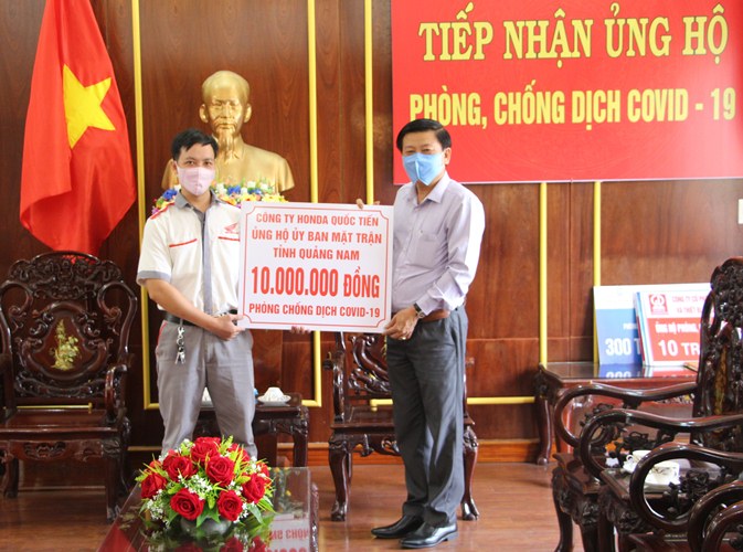 * Chiều ngày 06/4/2020, ông Lê Thái Bình- Phó Chủ tịch Uỷ ban MTTQ Việt Nam tỉnh tiếp nhận 10 triệu đồng từ Công ty Xe máy Honda Quốc Tiến tại Quảng Nam; Hội Liên hiệp Phụ nữ tỉnh ủng hộ 10 triệu đồng; Công ty Cổ phần Tập đoàn Lộc trời ủng hộ 5 tấn gạo; Công ty Bảo hiểm PJICO Quảng Nam ủng hộ 3.517.000 đồng.
