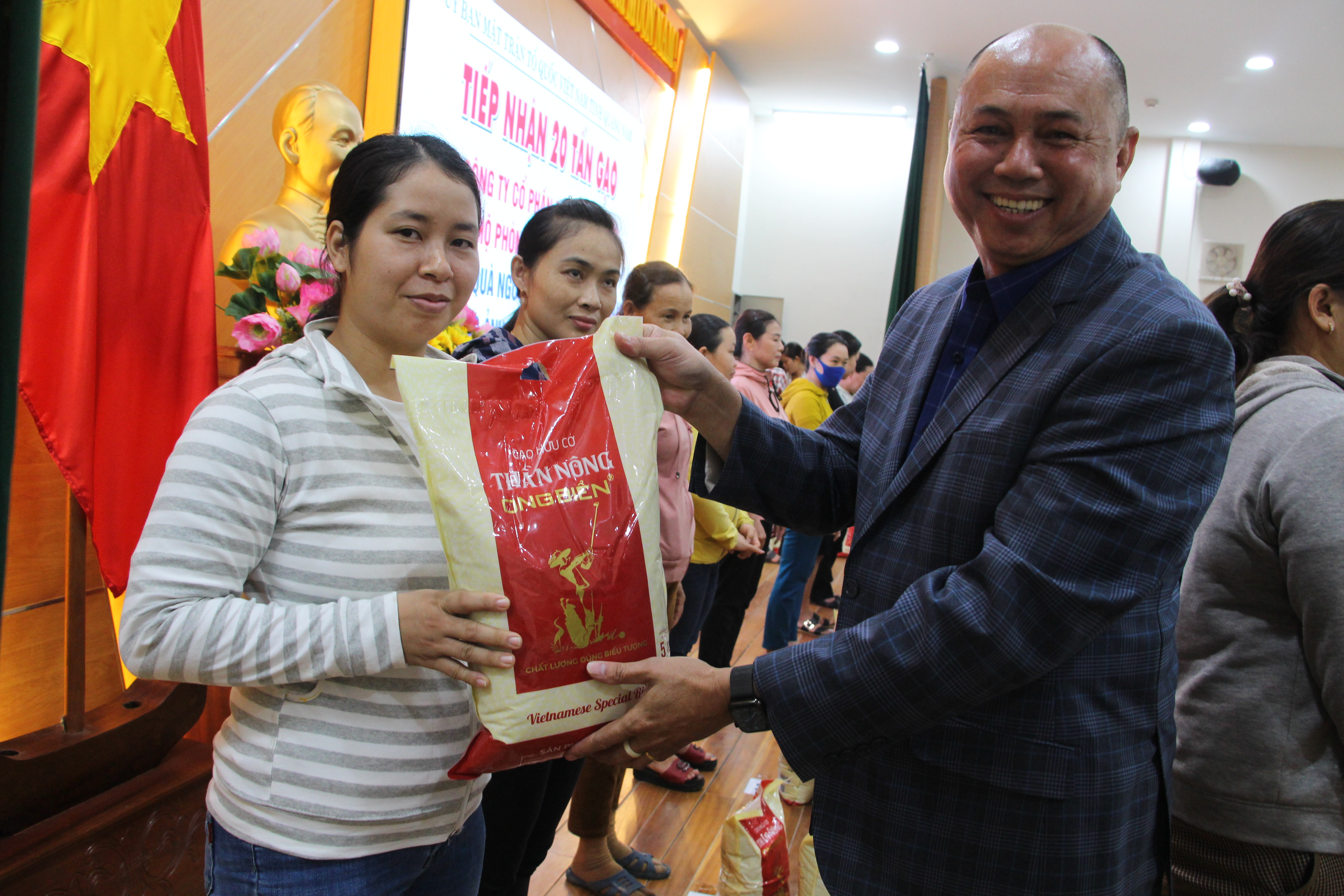 Ông Trần Ngọc Ký- Cố vấn thương mại Quốc tế đại diện Công ty trao tặng gạo cho các lao động bị mất việc làm