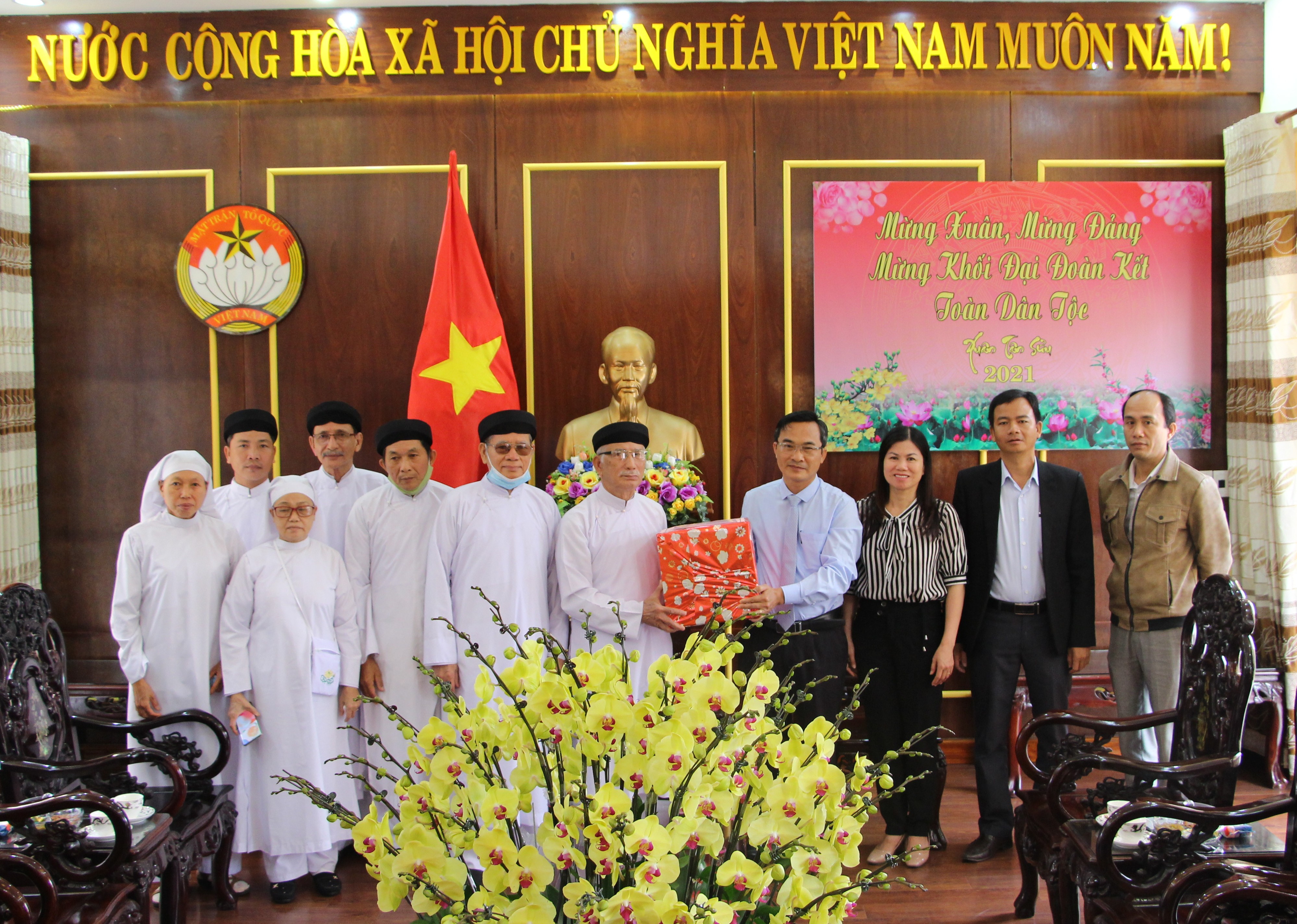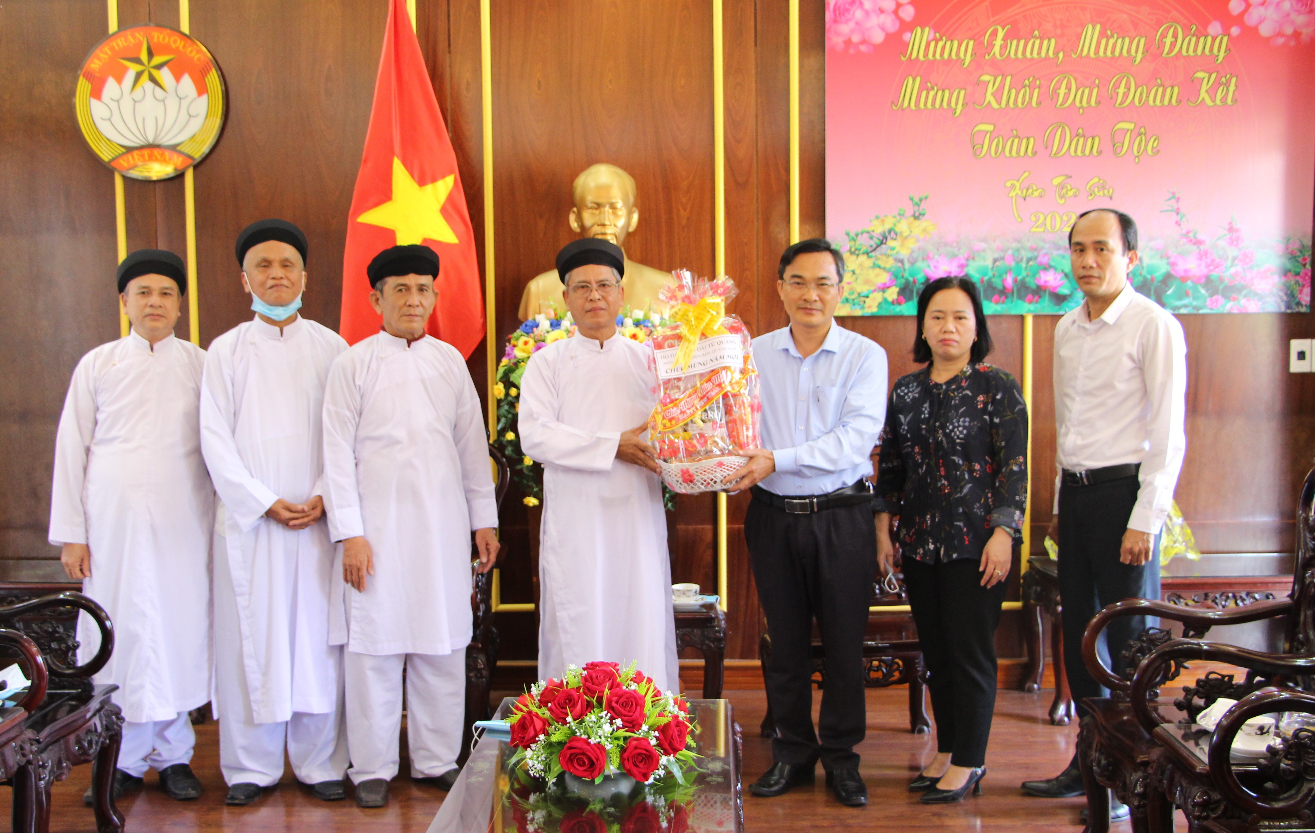 Các chức sắc Đạo Cao Đài của các họ đạo Linh Bửu, xã Đại Minh, huyện Đại Lộc và Họ đạo Từ Quang, xã Điện Phong, thị xã Điện Bàn thay mặt đồng bào hai họ đạo đến thăm và chúc mừng năm mới Lãnh đạo cùng CBCC cơ quan Ủy ban MTTQ Việt Nam tỉnh.