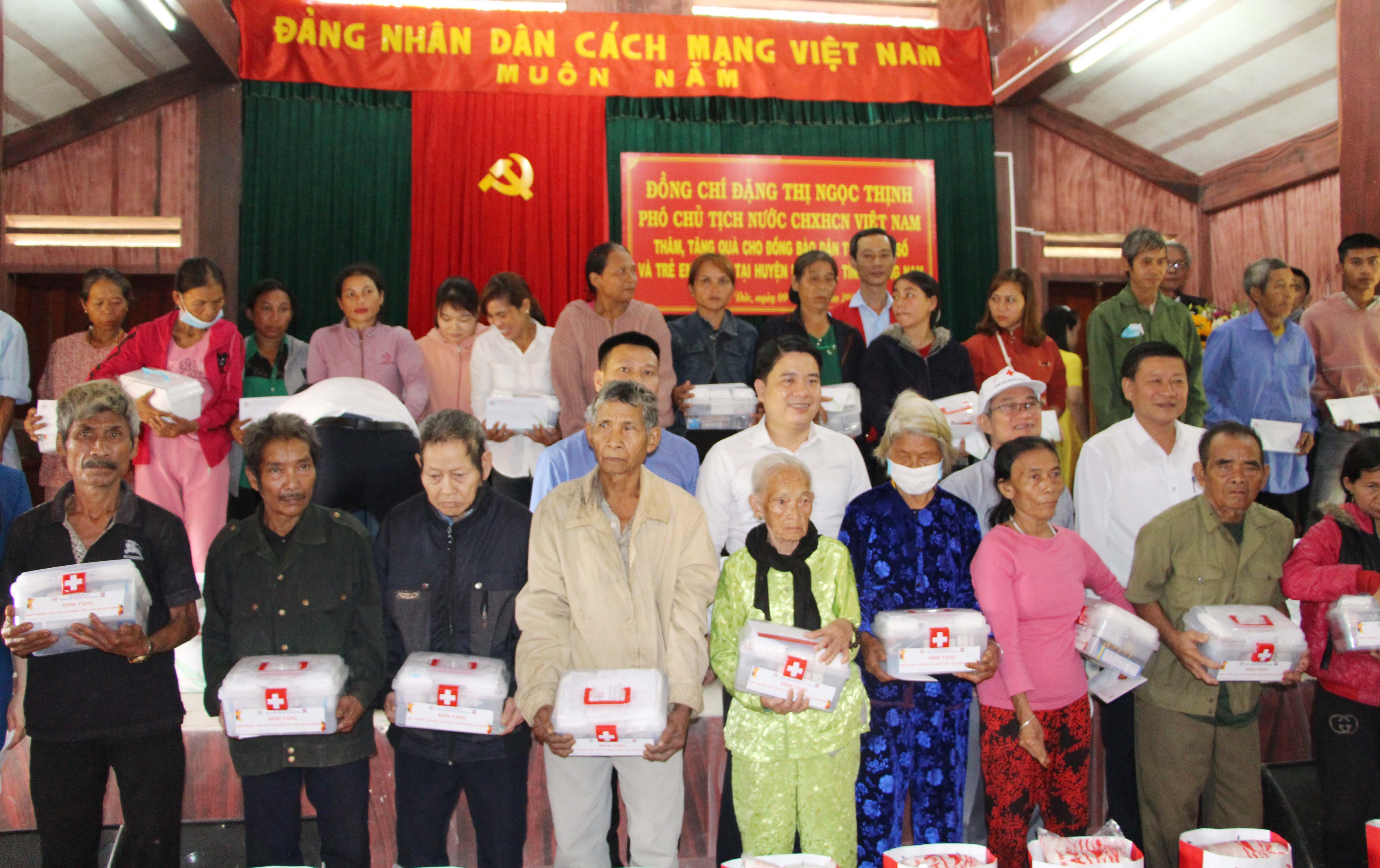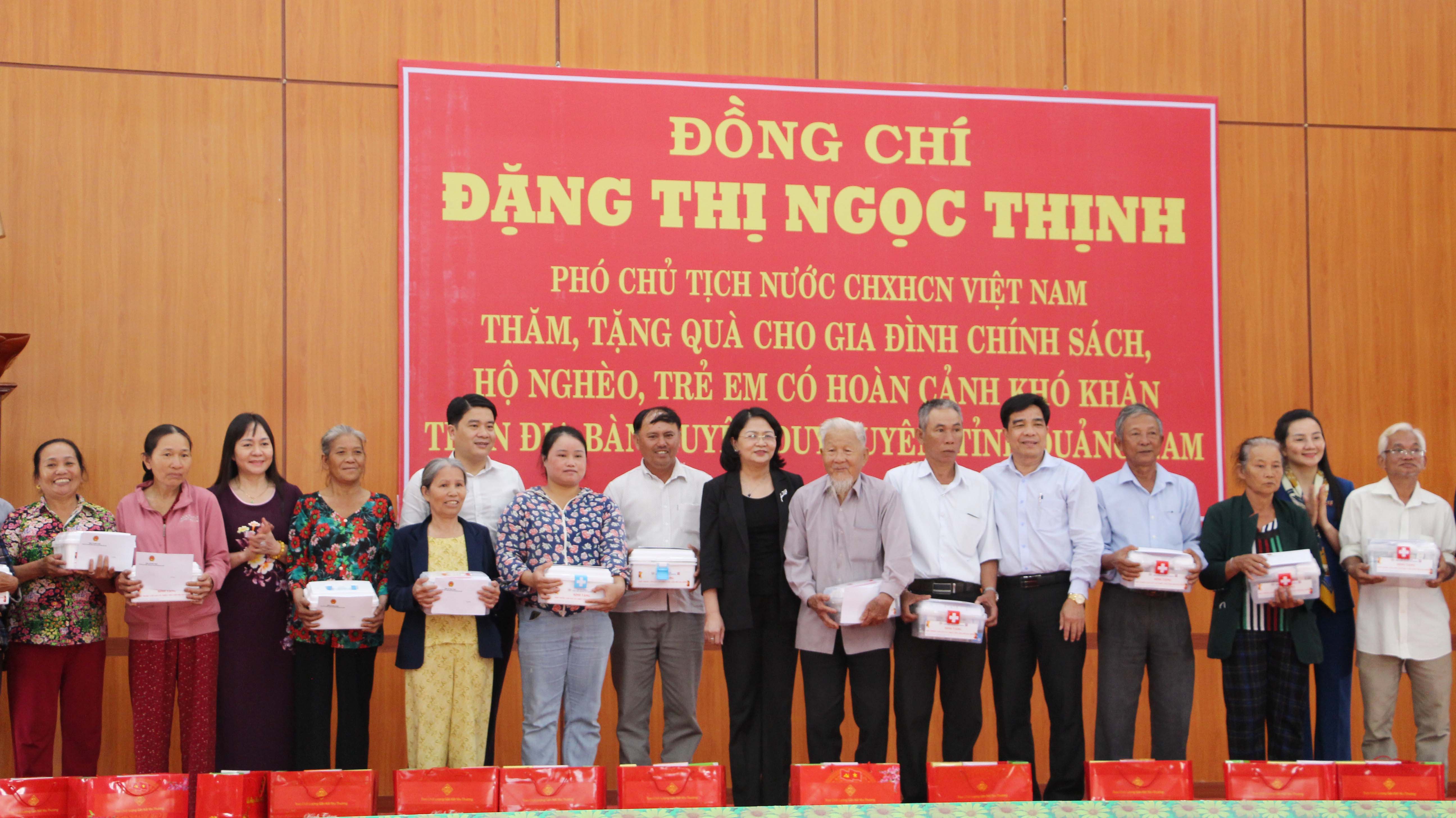 Dịp này, Phó Chủ tịch nước CHXHCNVN Đặng Thị Ngọc Thịnh đã trao tặng quà cho 100 gia đình đồng bào dân tộc thiểu số; tặng học bổng, quà đến 100 em học sinh có hoàn cảnh khó khăn huyện Hiệp Đức; tặng quà 100 gia đình chính sách, hộ nghèo huyện Duy Xuyên và tặng học bổng, quà cho 300 em học sinh có hoàn cảnh khó khăn huyện Duy Xuyên./.
