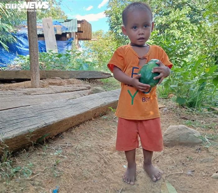 Hộ nào ít thì đôi ba ký, hộ nhiều thì sẵn sàng ủng hộ cả chục ký vì bà con vùng tâm dịch. Trong ảnh là hình ảnh cậu bé 3 tuổi (tổ Ông Lục, thôn 1) ôm trái đu đủ từ sau vườn ra trước nhà để trao cho lực lượng đi thu gom nông sản của thôn. (Ảnh: H.L)