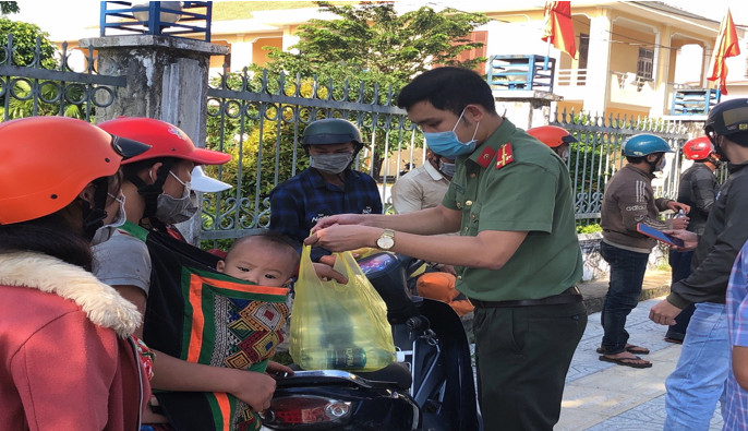 Đặc biệt, khuya ngày 28/9/2021, một nhóm người đồng bào dân tộc thiểu số đi trên những chiếc xe máy từ tỉnh Bình Phước về Nghệ An trên tuyến đường Hồ Chí Minh qua chốt kiểm soát dịch đèo Lò Xo, huyện Phước Sơn. Đây đều là những lao động nghèo là người đồng bào H’mông quê ở huyện Kỳ Sơn, tỉnh Nghệ An đến Bình Phước làm thuê cho các công ty cao su ở huyện Bù Gia Mập; trong đoàn có nhiều em nhỏ từ 1 đến 8 tháng tuổi. Sau khi thực hiện các thủ tục khai báo y tế, họ tiếp tục hành trình, song do di chuyển liên tục nhiều ngày liền nên khi đến địa bàn thị trấn Khâm Đức, cả đoàn đều đã thấm mệt và đói, một gia đình trẻ đi trong đoàn đã bị tai nạn, rất may chỉ bị thương nhẹ, chiếc xe máy bị hư hỏng nặng, không thể tiếp tục di chuyển được. Sau khi nhận được thông tin, sáng ngày 29/9, Ủy ban MTTQ Việt Nam huyện Phước Sơn đã phối hợp với Công an huyện kịp thời hỗ trợ bữa ăn nhanh tiếp sức cho đoàn gồm bánh mỳ, nước uống, sữa; bên cạnh đó, Ông Lý Minh Tám-một nhà hảo tâm tại thị trấn Khâm Đức đã quyết định mua một chiếc xe máy mới, trị giá 15 triệu đồng tặng cho đôi vợ chồng bị tai nạn và hỗ trợ cho mỗi gia đình một triệu đồng tiền mặt để tiếp tục hành trình về quê với chặng đường còn hơn 500km./.