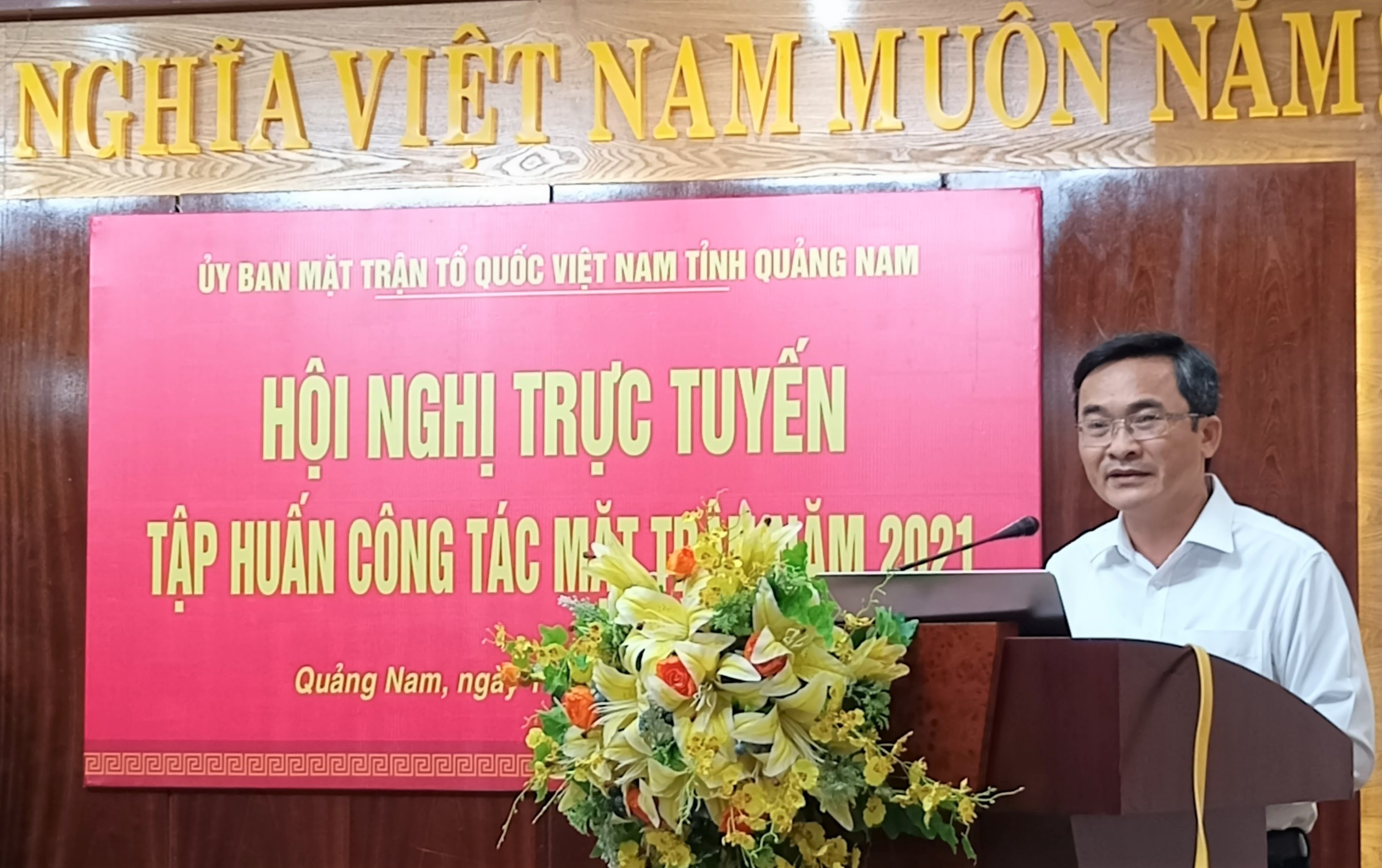Phát biểu khai mạc Hội nghị, ông Võ Xuân Ca, UVBTV, Chủ tịch Ủy ban MTTQ Việt Nam tỉnh nhấn mạnh: nội dung tập huấn lần này tiếp tục được đổi mới theo hình thức đối thoại, tập trung giải quyết những vấn đề thực tiễn đặt ra đối với cán bộ Mặt trận cơ sở. Trong điều kiện dịch bệnh Covid -19, hội nghị tập huấn được tổ chức bằng hình thức trực tuyến, đề nghị các đại biểu tham dự nghiêm túc, tập trung cao, chủ động phát biểu đề xuất, chia sẻ thẳng thắn những vướng mắc, khó khăn cần được tháo gỡ trong quá trình thực hiện nhiệm vụ tại cơ sở, góp phần quyết định đến hiệu quả công tác Mặt trận trong thời gian đến.