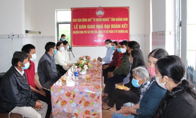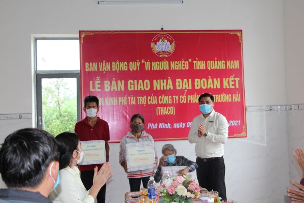 Các hộ được bàn giao tại buổi lễ gồm: gia đình bà Ngô Thị Hoa, bà Lê Thị Trợ (thôn Thạnh Hòa, xã Tam Đàn) và gia đình bà Hồ Thị Chương (xã Tam Thái). Đây là những hộ gia đình có hoàn cảnh khó khăn, hộ nghèo được chọn để Công ty Cổ phần Ô tô Trường Hải hỗ trợ xây nhà Đại đoàn kết. Sau nhiều tháng thi công, đến nay 03 căn nhà đã được hoàn thành, đảm bảo chất lượng, tiến hành bàn giao và đi vào sử dụng. Với tổng kinh phí xây dựng được hỗ trợ mỗi gia đình 100 triệu đồng, trong đó Công ty Cổ phần Ô tô Trường Hải hỗ trợ 50 triệu đồng, nguồn Cứu trợ của tỉnh 40 triệu đồng, nguồn quỹ của xã 10 triệu đồng, cùng với số tiền của gia đình tự đóng góp.