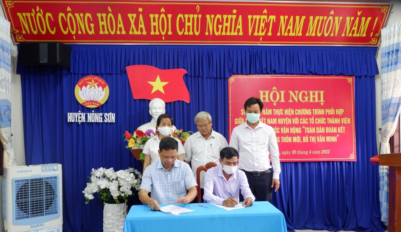Tại hội nghị Ủy ban MTTQ Việt Nam và các tổ chức thành viên huyện thống nhất ký kết Kế hoạch hiệp thương phân công nhiệm vụ giữa Ủy ban MTTQ Việt Nam với các tổ chức thành viên huyện tham gia thực hiện Cuộc vận động “Toàn dân đoàn kết xây dựng nông thôn mới, đô thị văn minh” trên địa bàn huyện năm 2022.