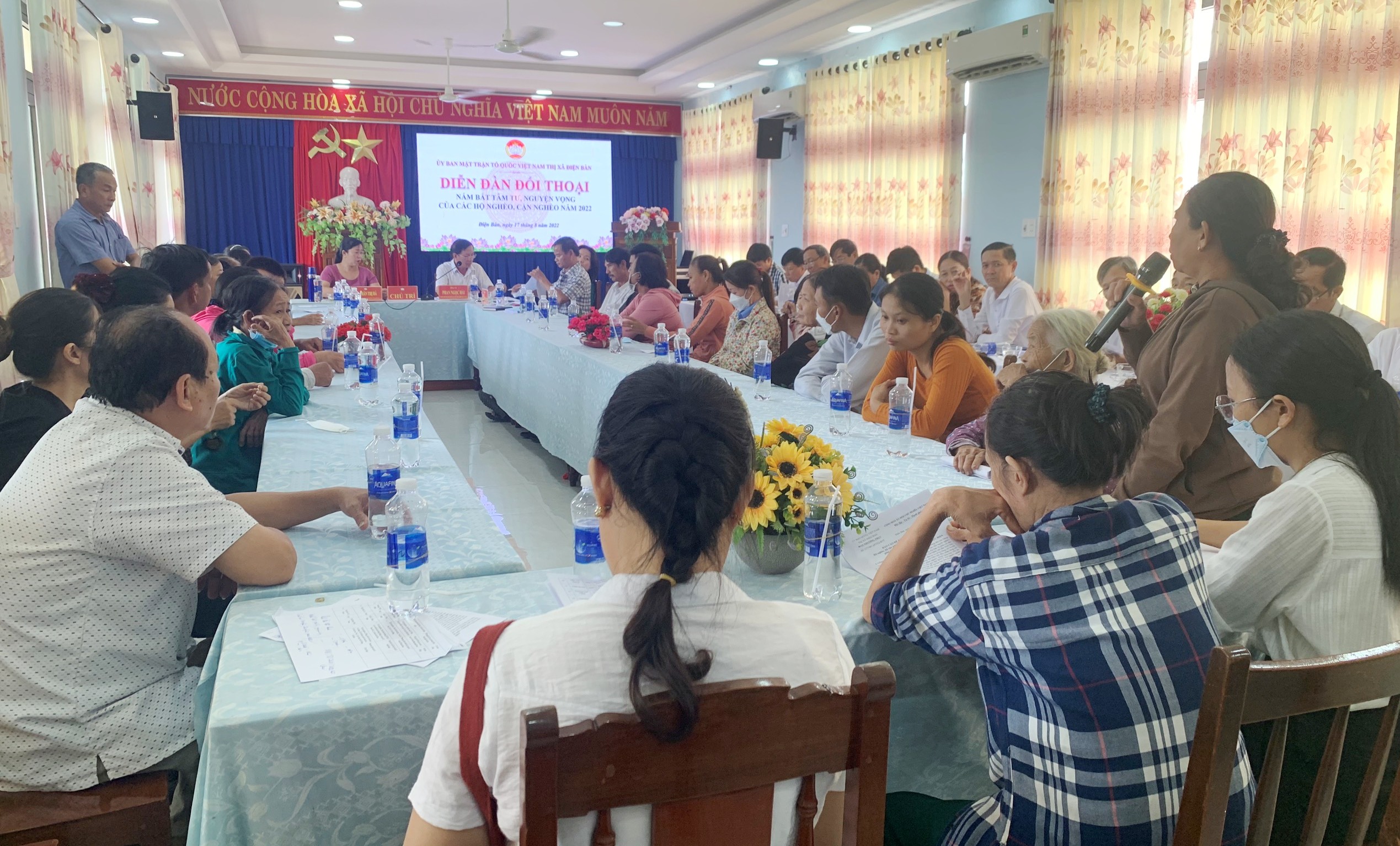 Trên cơ sở danh sách đăng ký thoát nghèo bền vững năm 2022 do các địa phương báo cáo, Ban Thường trực Ủy ban MTTQ Việt Nam thị xã đã cùng với các tổ chức chính trị - xã hội thị xã thành lập đoàn khảo sát thực tế đối với 12 hộ nghèo và 22 hộ cận nghèo đăng ký thoát nghèo trong năm 2022 để có cơ sở tổ chức diễn đàn đối thoại trực tiếp với các hộ. Tại diễn đàn, các hộ dân đã bày tỏ những tâm tư, nguyện vọng chính đáng của mình, cụ thể:Có 8 hộ xin hỗ trợ sửa chữa nhà; 5 hộ đề nghị hỗ trợ phương tiện đi lại như xe máy, xe đạp; 12 hộ xin hỗ trợ bò giống, gà giống, cây trồng, nguồn vốn... Bên cạnh đó, có một số hộ đã tự nguyện đăng ký thoát cận nghèo và không đề xuất hỗ trợ gì thêm. Sau khi lắng nghe nguyện vọng của các hộ dân, lãnh đạo các phòng ban của thị xã đã tư vấn, giải đáp một số chính sách hỗ trợ hiện hành cho hộ nghèo, hộ cận nghèo, chế độ miễn giảm học phí cho con của hộ nghèo, chính sách hỗ trợ vay vốn phát triển sản xuất…