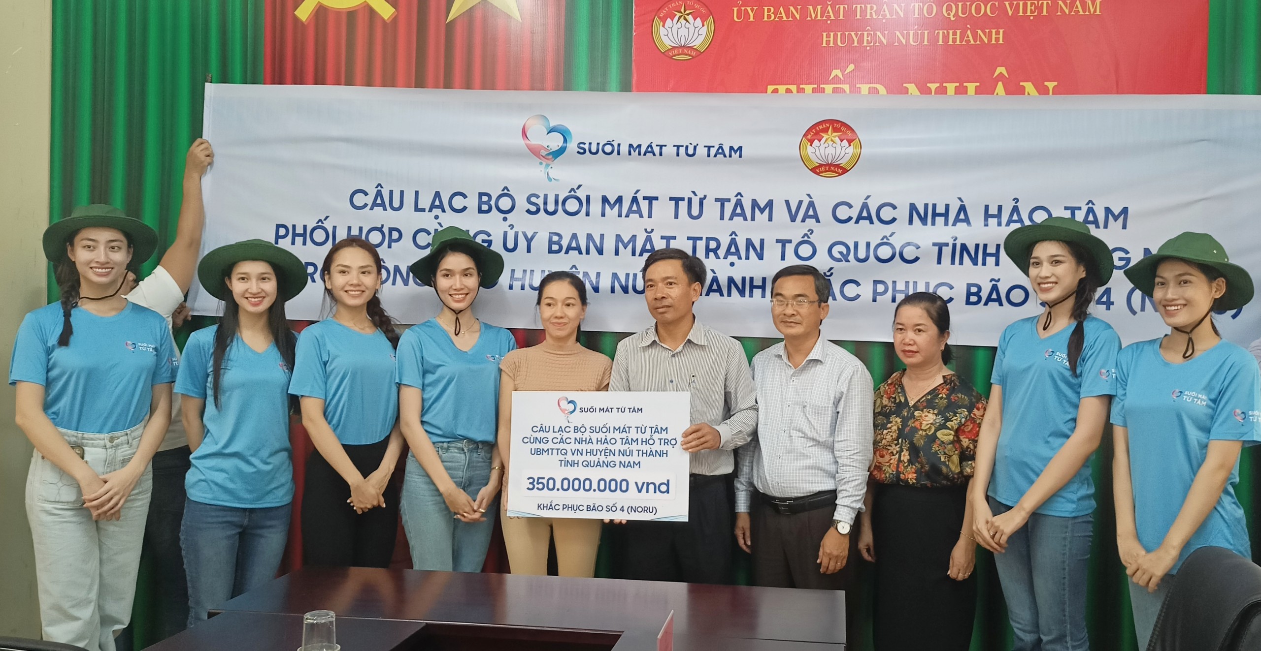 Lãnh đạo Ủy ban MTTQ Việt Nam huyện Núi Thành tiếp nhận ủng hộ 350 triệu đồng từ Câu lạc bộ Suối Mát Từ Tâm