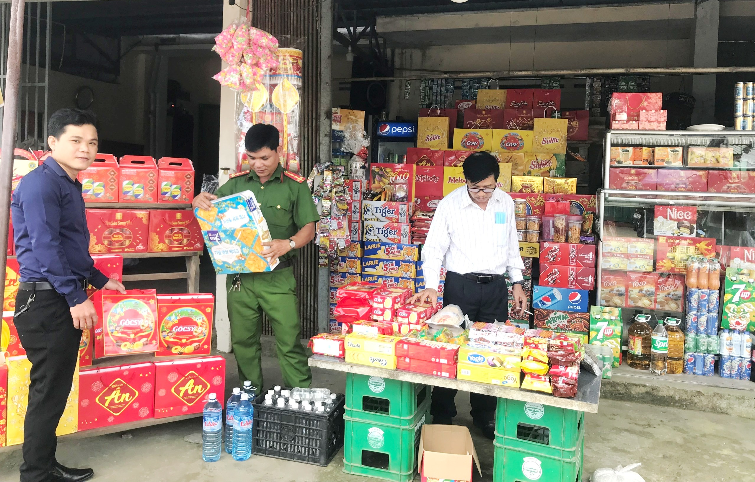 Đoàn kiểm tra đảm bảo ATTP tại một cửa hàng tạp hóa