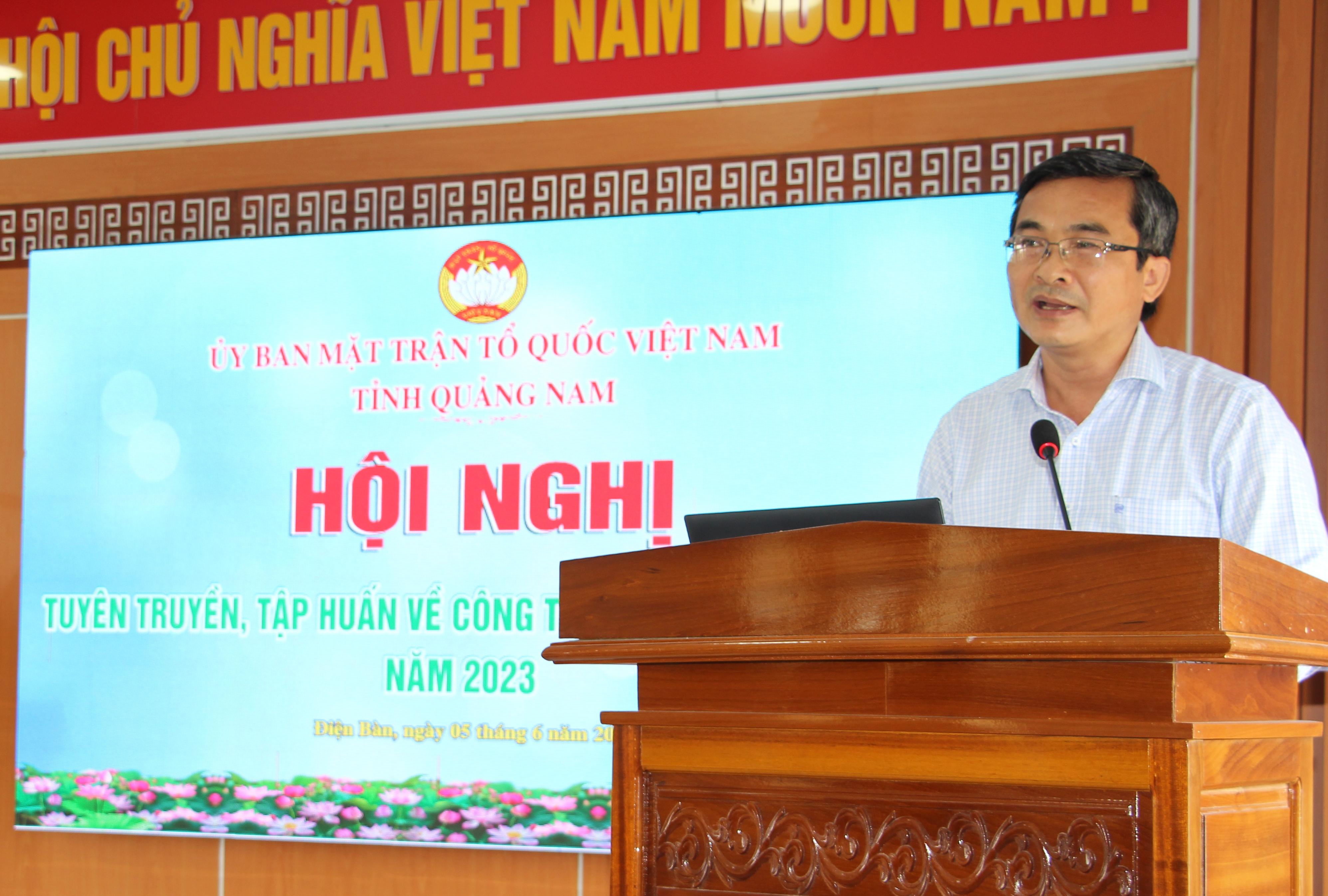 Sáng ngày 05/6, Ban Thường trực Uỷ ban MTTQ Việt Nam tỉnh phối hợp với Ban Thường trực Uỷ ban MTTQ Việt Nam thị xã Điện Bàn tổ chức Hội nghị tuyên truyền, tập huấn công tác bảo vệ môi trường năm 2023 cho hơn 100 đại biểu là cán bộ Mặt trận cơ sở, các vị chức sắc tôn giáo và trưởng các tộc họ trên địa bàn thị xã. Đây là hoạt động hưởng ứng Ngày môi trường thế giới (5/6).