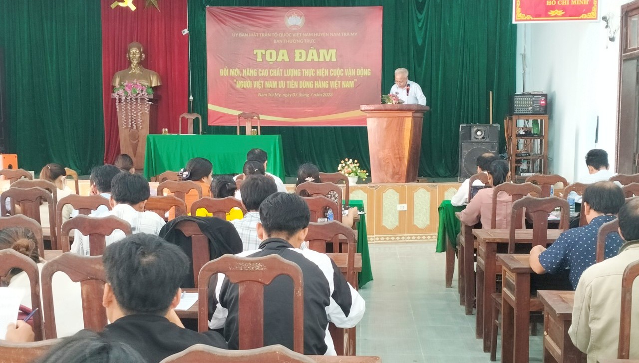 Tại tọa đàm, Ban Thường trực Ủy ban MTTQ Việt Nam huyện quán triệt Chỉ thị số 03-CT/TW ngày 19/5/2022 của Ban Bí thư và Chương trình số 08-CT/TU ngày 18/8/2021 của Tỉnh ủy Quảng Nam về triển khai thực hiện Chỉ thị số 03-CT/TW ngày 19/5/2021 của Ban Bí thư về việc tăng cường sự lãnh đạo của Đảng đối với Cuộc vận động “Người Việt Nam ưu tiên dùng hàng Việt Nam” trong tình hình mới. Phòng Kinh tế hạ tầng báo cáo kết quả đạt được trong năm 2021, 2022 về công tác xúc tiến thương mại thu hút doanh nghiệp đầu tư sản xuất chế biến hàng nông sản địa phương; phát triển thị trường trên địa bàn huyện, vận động người dân và doanh nghiệp trên địa bàn tham gia chương trình OCOP, sản phẩm công nghiệp nông thôn tiêu biểu và sản phẩm khởi nghiệp đổi mới sáng tạo trên địa bàn huyện. Thông tin về chỉ dẫn địa lý Sâm Ngọc Linh và cây Quế Trà My; các nhãn hiệu tập thể trên địa bàn huyện Nam Trà My. Trưng bày 21 sản phẩm OCOP, sản phẩm công nghiệp nông thôn tiêu biểu và sản phẩm khởi nghiệp đổi mới sáng tạo trên địa bàn huyện.