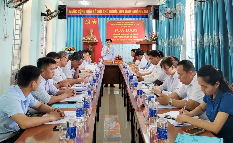 Tại buổi tọa đàm, các đại biểu nghe 3 báo cáo tham luận của Hội Nông dân huyện, Ban Thường trực Ủy ban MTTQ Việt Nam thị trấn Đông Phú, xã Quế Phú và nhiều ý kiến phát biểu thảo luận phân tích rõ nguyên nhân, thuận lợi, khó khăn hạn chế và chia sẻ kinh nghiệm hay trong công tác triển khai thực hiện Cuộc vận động “Người Việt Nam ưu tiên dùng hàng Việt Nam” gắn với Phong trào “Đoàn kết sáng tạo” thời gian qua; đề xuất giải pháp để thực hiện hiệu quả trong thời gian đến.