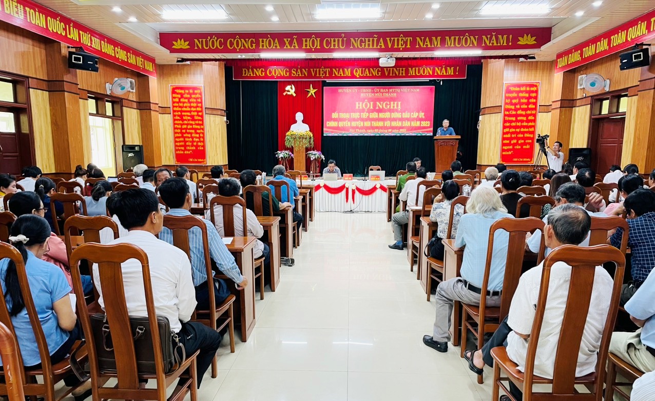 Buổi Đối thoại đã diễn ra trong không khí dân chủ, cởi mở, thẳng thắn, đã có 10 lượt ý kiến trực tiếp và 24 lượt ý kiến góp ý bằng văn bản của Nhân dân thể hiện sự tin tưởng vào sự lãnh đạo của cấp uỷ, chính quyền huyện, đồng thời vui mừng, phấn khởi trước sự phát triển của huyện Núi Thành trong những năm qua và cũng mong mỏi, gởi gắm nguyện vọng, đề xuất đến cấp uỷ, chính quyền huyện ở các nhóm nội dung như: cần chú trọng đến công tác vệ sinh môi trường, xử lý rác thải; tăng cường công tác đảm bảo trật tự an toàn giao thông, an sinh xã hội; tập trung phát triển văn minh đô thị, văn hoá thể thao, du lịch; làm tốt công tác quản lý hiện trạng; đẩy nhanh việc thực hiện dự án, giao thông nông thôn … Với tinh thần trách nhiệm cao, đồng chí Bí thư Huyện ủy, Chủ tịch UBND huyện đã lắng nghe và nghiêm túc tiếp thu, giải trình các ý kiến, kiến nghị cũng như các ý kiến đề xuất của Nhân dân. Những vấn đề người dân phản ánh, trao đổi tại Hội nghị đều được lãnh đạo các cơ quan chức năng của Huyện làm rõ, trả lời cụ thể, xác đáng ngay tại buổi đối thoại.