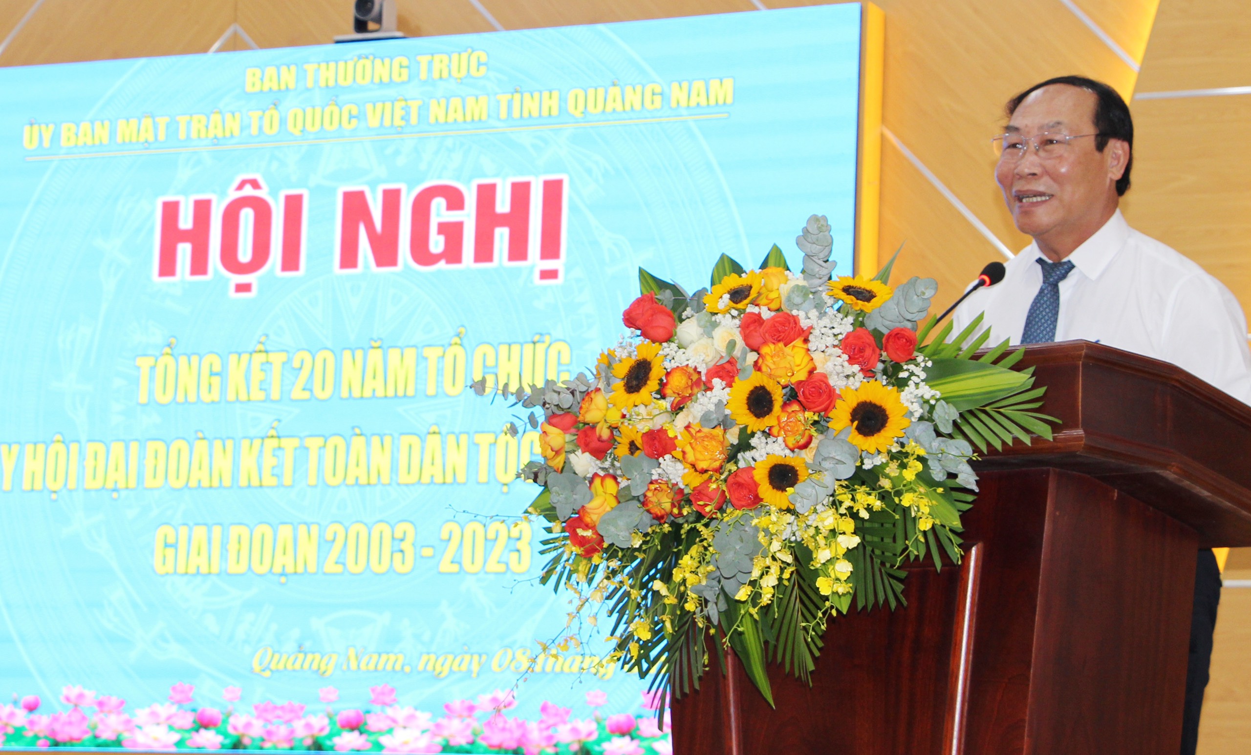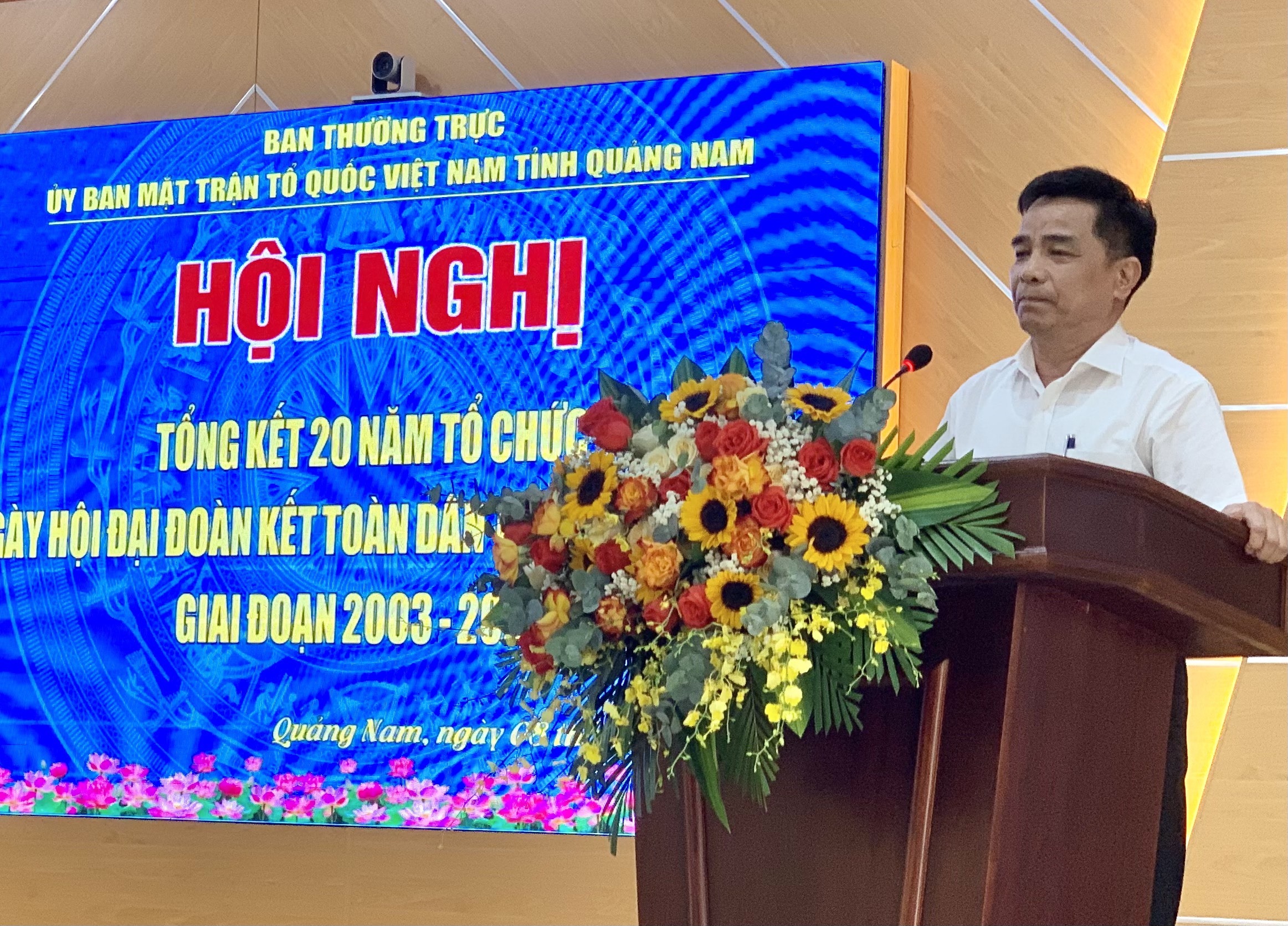 Phát biểu tại hội nghị, ông Lê Văn Dũng - Phó Bí thư Thường trực Tỉnh ủy, Trưởng Đoàn đại biểu Quốc hội tỉnh đánh giá cao những kết quả đạt được của Ủy ban MTTQ Việt Nam các cấp qua 20 năm tổ chức Ngày hội Đại đoàn kết toàn dân tộc. Đồng thời, chỉ đạo Ủy ban MTTQ Việt Nam các cấp tập trung xây dựng khối đại đoàn kết toàn dân tộc, tạo ra sức mạnh tổng hợp, tăng cường tình làng nghĩa xóm, góp phần xây dựng quê hương Quảng Nam ngày càng phát triển, giàu đẹp, xem đây là vấn đề cốt lõi để thành công; tiếp tục quán triệt, tuyên truyền trong toàn Đảng, toàn dân nhận thức sâu sắc việc tổ chức Ngày hội Đại đoàn kết, tiếp tục đổi mới nội dung, phương thức, cách làm trong tổ chức Ngày hội để Ngày hội thực sự là Ngày hội Đại đoàn kết toàn dân tộc ở khu dân cư; thực hiện tốt 5 nội dung Cuộc vận động “Toàn dân đoàn kết xây dựng nông thôn mới, đô thị văn minh” và tăng cường vai trò, trách nhiệm của MTTQ Việt Nam các cấp, nhất là Ban công tác Mặt trận khu dân cư trong triển khai tổ chức Ngày hội.
