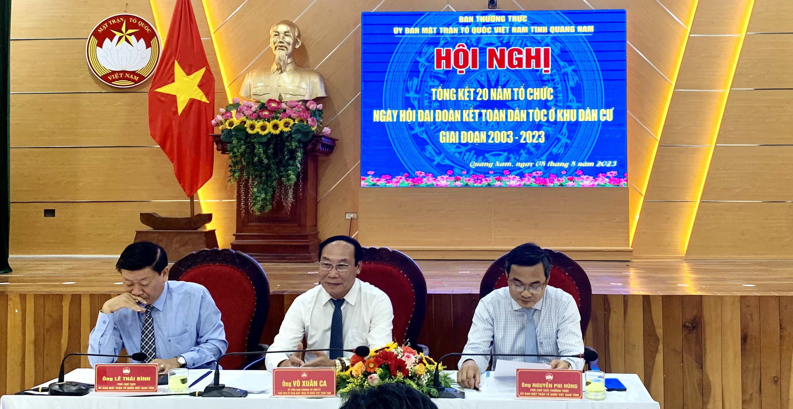 Phát biểu khai mạc hội nghị, ông Võ Xuân Ca khẳng định, việc tổ chức các hoạt động trong Ngày hội, đã khơi dậy, tôn vinh các giá trị văn hóa truyền thống tốt đẹp của quê hương, đất nước; tinh thần đoàn kết, gắn bó, tương thân tương ái của cộng đồng được vun đắp, củng cố, phát huy; san sẻ với các gia đình gặp khó khăn, hoạn nạn, tri ân gia đình có công với đất nước; những mâu thuẫn, phát sinh trong đời sống, sinh hoạt hằng ngày được giải tỏa, tình đoàn kết xóm làng càng thêm thắt chặt, đã góp phần xây dựng khối đại đoàn kết toàn dân từ cơ sở. Với kết quả đó, có thể khẳng định chủ trương tổ chức “Ngày hội Đại đoàn kết toàn dân tộc” của Đoàn Chủ tịch Ủy ban Trung ương MTTQ Việt Nam năm 2003 là hoàn toàn đúng đắn, đáp ứng được yêu cầu xây dựng khối đại đoàn kết toàn dân tộc trong tình hình mới. Ngày hội Đại đoàn kết toàn dân tộc ở khu dân cư thực sự đã trở thành ngày hội toàn dân, tập hợp và biểu dương lực lượng khối đại đoàn kết toàn dân tộc; là một trong những nội dung quan trọng của công tác Mặt trận và ngày càng thể hiện sức sống bền vững trong cộng đồng các dân tộc trên địa bàn tỉnh Quảng Nam.