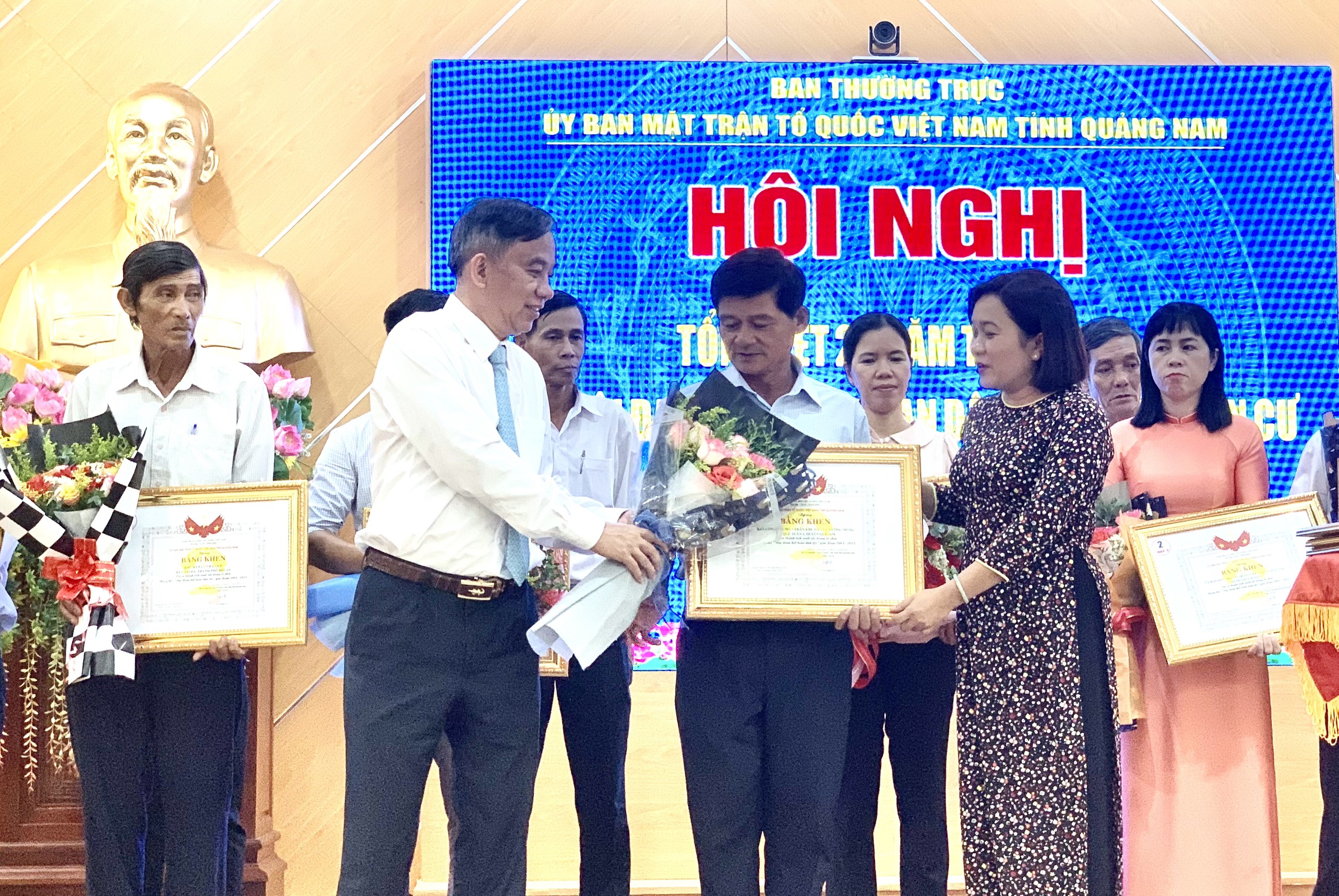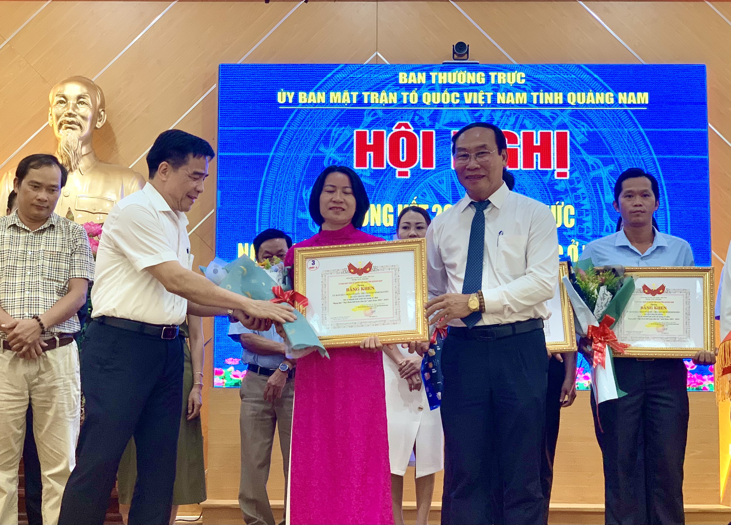 Dịp này Hội nghị biểu dương khen thưởng 104 tập thể (24 Ủy ban MTTQ Việt Nam cấp xã và 80 Ban Công tác Mặt trận ở Khu dân cư) có thành tích xuất sắc trong tổ chức Ngày hội “Đại đoàn kết toàn dân tộc” giai đoạn 2003-2023./.