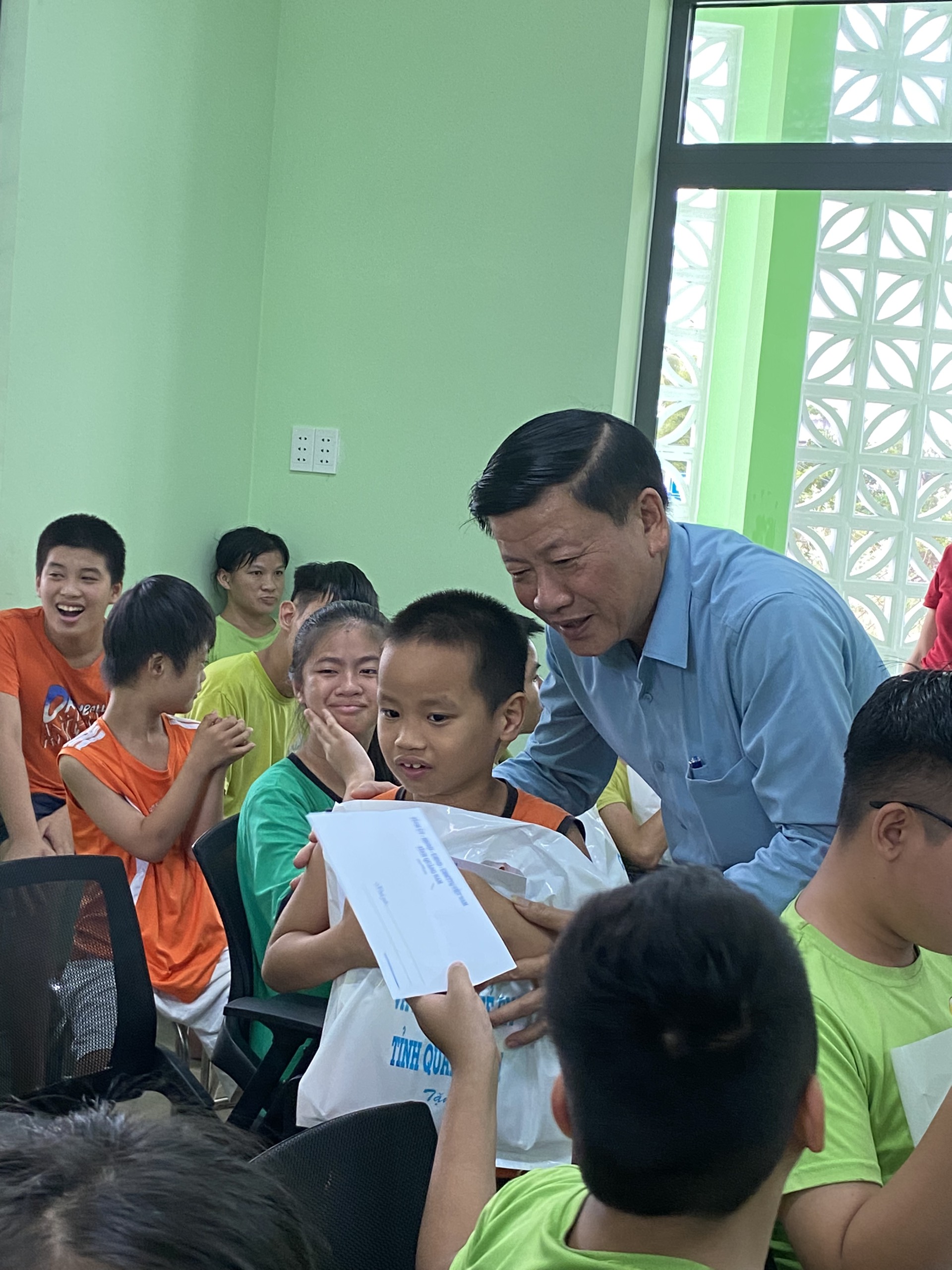 Đến thăm các cháu, ông Lê Thái Bình - Phó Chủ tịch Ủy ban MTTQ Việt Nam tỉnh ân cần thăm hỏi, chia sẻ, động viên các cháu chăm ngoan, vâng lời quý thầy cô và ghi nhận những nỗ lực vượt khó của các cháu khuyết tật cùng gia đình trong hành trình vượt lên chính mình, đưa trẻ em khuyết tật vượt qua mặc cảm, hoà nhập cộng đồng. Đánh giá cao tấm lòng nhân ái của đội ngũ cán bộ, quản lý, giáo viên đang giảng dạy tại Trung tâm.
