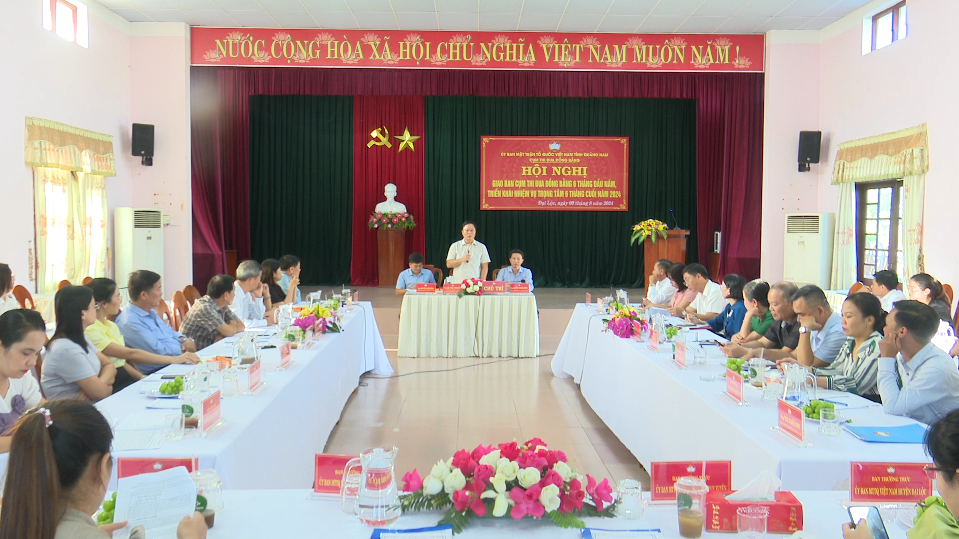Về nhiệm vụ công tác 6 tháng cuối năm, các huyện, thị, thành phố trong cụm đề ra một số nhiệm vụ trọng tâm đó là: đẩy mạnh công tác tuyên truyền chào mừng Đại hội đại biểu MTTQ Việt Nam tỉnh Quảng Nam lần thứ XI, nhiệm kỳ 2024 - 2029 và Đại hội đại biểu toàn quốc MTTQ Việt Nam lần thứ X, nhiệm kỳ 2024 -2029; tổ chức các hoạt động kỷ niệm 94 năm Ngày truyền thống MTTQ Việt Nam (18/11/1930 - 18/11/2024) gắn với tổ chức Ngày hội Đại đoàn kết toàn dân tộc ở khu dân cư năm 2024; triển khai thực hiện có hiệu quả các cuộc vận động và các phong trào thi đua “Xóa nhà tạm, nhà dột nát”; “Cả nước chung tay vì người nghèo - Không để ai bị bỏ lại phía sau”; “Tháng cao điểm vì người nghèo” năm 2024; chăm lo Tết cho người nghèo nhân dịp Tết Nguyên đán Ất Tỵ năm 2025; Tăng cường hiệu quả hoạt động tham gia góp ý xây dựng Đảng, xây dựng chính quyền.