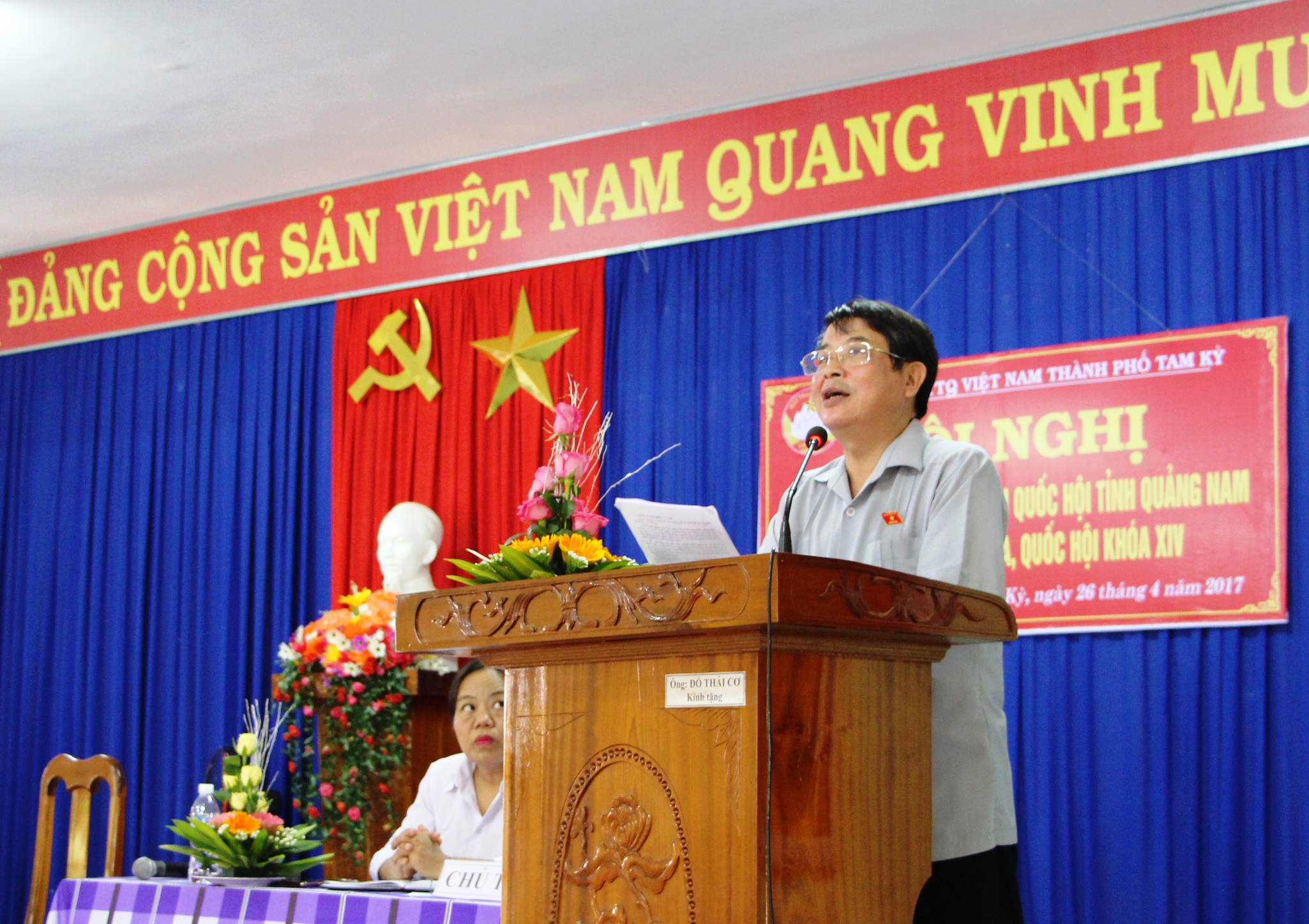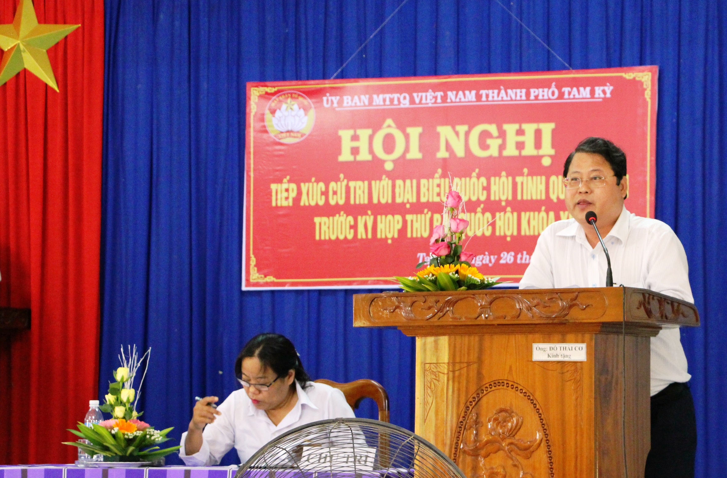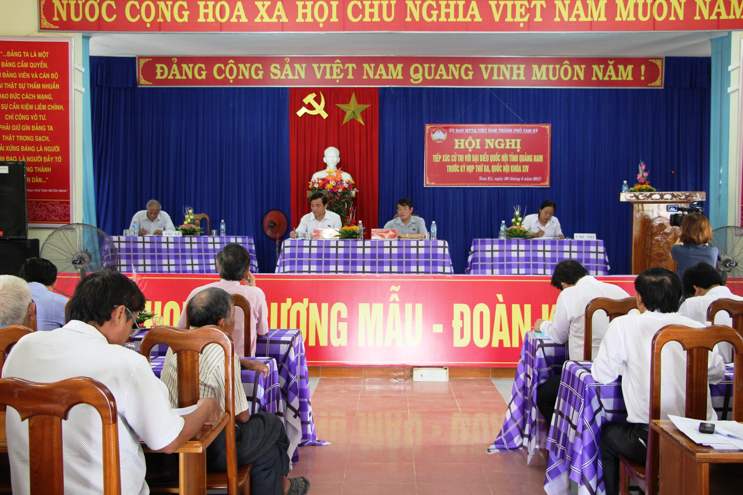 Bày tỏ tâm tư, nguyện vọng với đại biểu Quốc hội, cử tri thành phố Tam Kỳ thể hiện niềm phấn khởi trước sự phát triển kinh tế- xã hội của tỉnh, của đất nước, đời sống nhân dân ngày càng được ấm no, hạnh phúc. Nhân dân khẳng định luôn tin tưởng vào sự lãnh đạo của Đảng, sự quản lý điều hành của Nhà nước. Tuy nhiên nhiều vấn đề cử tri còn băn khoăn lo lắng và được trình bày trực tiếp tại hội nghị với 15 ý kiến, đề cập đến những vấn đề như: Phòng chống tham nhũng; giải quyết việc làm cho lao động nông thôn; vấn đề quản lý đất đai; thu hút đầu tư dự án; vấn đề ô nhiễm môi trường; phát triển hạ tầng nông thôn, đô thị; xây dựng nông thôn mới; giá cả nông, hải sản; chế độ chính sách người có công; đánh giá năng lực đội ngũ cán bộ cấp xã …