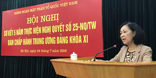 Ghi nhận những kết quả tích cực mà hệ thống MTTQ đã làm được trong triển khai thực hiện Nghị quyết 25 thời gian qua, Trưởng Ban Dân vận Trung ương Trương Thị Mai nhấn mạnh, cái đích cuối cùng của dân vận chính là lòng tin, là củng cố lòng tin của nhân dân với Đảng, với hệ thống chính quyền. Do đó, thời gian tới, MTTQ cần tập trung nắm bắt thực tiễn đời sống, tâm tư, nguyện vọng nhân dân. Trong đó chú trọng đến việc tiếp dân, đối thoại với dân, tham gia giám sát, phản biện xã hội.