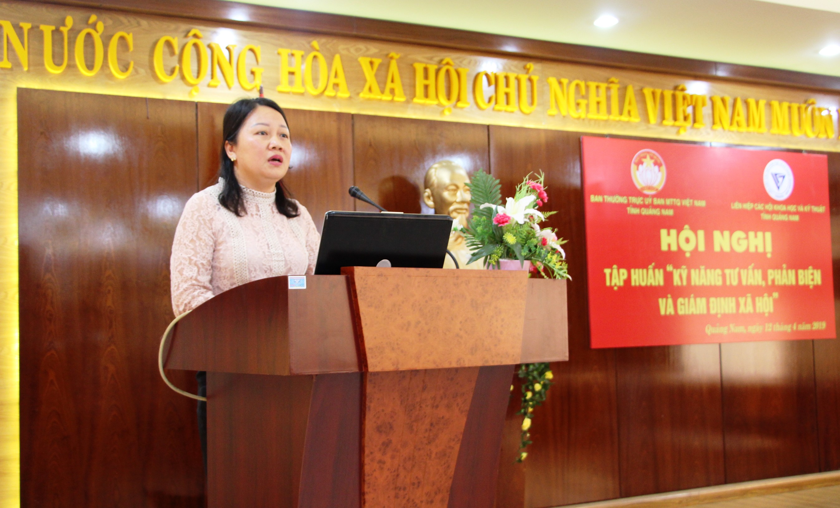 Bà Bùi Kim Tuyến- Trưởng ban Tư vấn, Phản biện khóa tập huấn Liên hiệp các hội Khoa học và Kỹ thuật Việt Nam đã trao đổi với các đại biểu tham dự nội dung trọng tâm về Quy trình thực hiện công việc tư vấn, phản biện và kỹ năng viết báo cáo tư vấn, phản biện, trong đó đặc biệt chú ý đến một số yêu cầu về phương pháp thực hiện, những lưu ý khi xây dựng đề cương, viết báo cáo phản biện, phương thức truyền đạt kết quả để đạt được mục tiêu đề ra..; chia sẻ nhiều kinh nghiệm, kỹ năng về: Xác định lựa chọn, đề xuất tư vấn, phản biện, thu thập bằng chứng, thông tin liên quan đến dự án tư vấn, phản biện, lựa chọn chuyên gia, tổ chức thực hiện tư vấn, phản biện, tổng hợp báo cáo ngắn gọn, kết luận kiến nghị phải sắc đáng, rõ ràng và có tính khả thi; đặc biệt phải làm tốt công tác truyền thông và theo dõi đánh giá, giám sát sau kết quả tư vấn, phản biện.