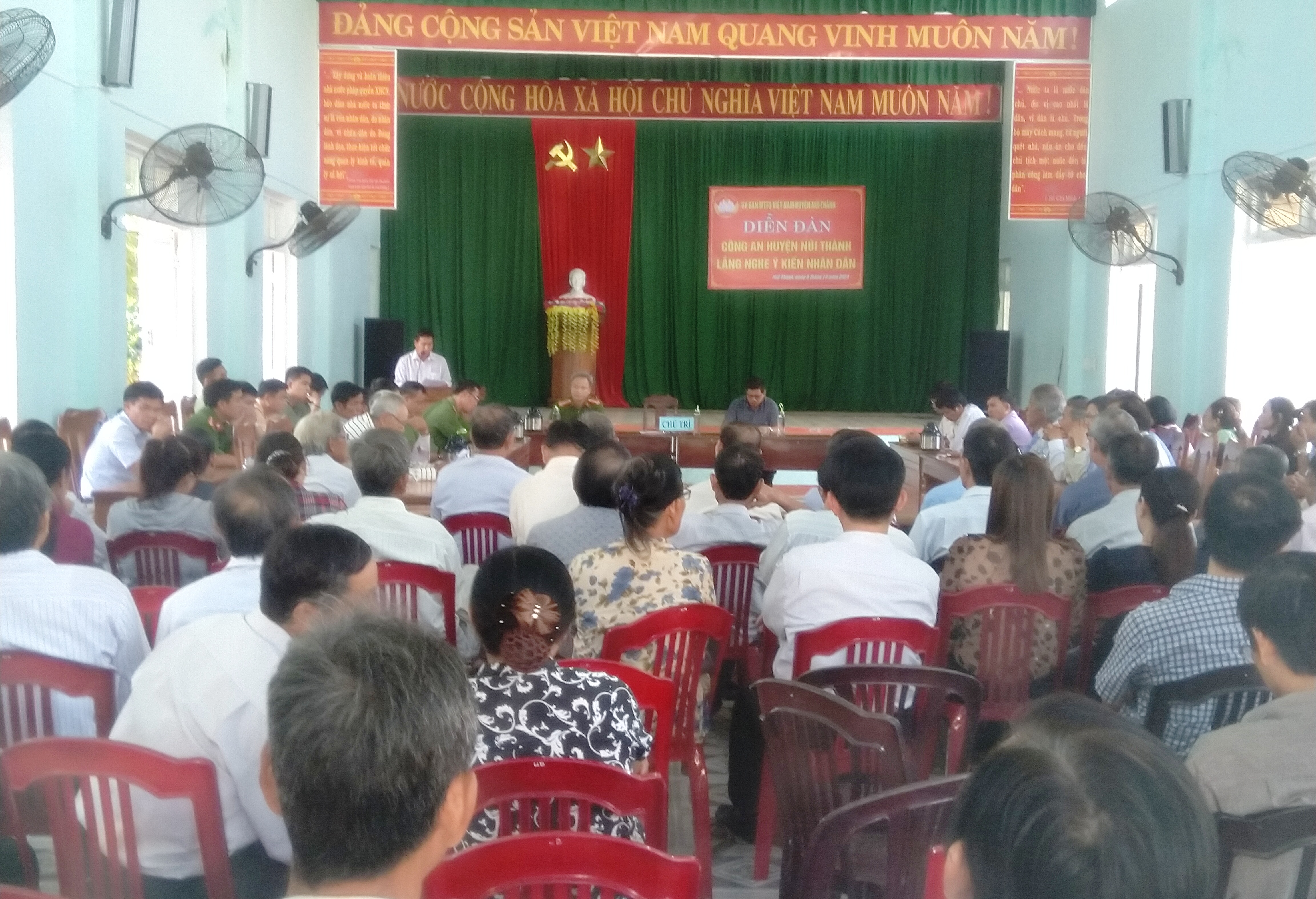Tại diễn đàn, đồng chí Thượng tá Phạm Viết Tiến, thay mặt lãnh đạo Công an huyện trình bày báo cáo kết quả thực hiện nhiệm vụ trong 9 tháng đầu năm 2019 của lực lượng Công an huyện và định hướng các nhiệm vụ trọng tâm về đảm bảo an ninh trật tự trong thời gian tới. Qua 9 tháng đầu năm 2019, bám sát chỉ đạo của Công an tỉnh, của Huyện, Công an huyện đã chủ động, tích cực, quyết liệt triển khai thực hiện các kế hoạch, biện pháp, nhiệm vụ công tác trọng tâm, tăng cường, nâng cao chất lượng công tác nắm, đánh giá và dự báo tình hình, chủ động tham mưu cấp ủy, chính quyền lãnh đạo, chỉ đạo bảo đảm ổn định tình hình an ninh chính trị nội bộ, an ninh tư tưởng - văn hóa, an ninh nông thôn, an ninh tôn giáo, dân tộc..., không để bị động, bất ngờ, diễn biến phức tạp, hình thành “điểm nóng” về ANTT; triển khai quyết liệt, hiệu quả các mặt công tác phòng ngừa, đấu tranh kiềm chế hoạt động của các loại tội phạm, tệ nạn xã hội; tăng cường công tác bảo đảm trật trự an toàn giao thông (TTATGT); nâng cao hiệu lực, hiệu quả công tác quản lý nhà nước về an ninh - trật tự; đẩy mạnh phong trào toàn dân bảo vệ ANTQ. Siết chặt kỷ luật, kỷ cương, tác phong, lề lối làm việc, thái độ phục vụ nhân dân, nâng cao vai trò, trách nhiệm, tính gương mẫu của lãnh đạo, chỉ huy; triển khai toàn diện, đồng bộ công tác xây dựng Đảng, xây dựng lực lượng, hậu cần, cải cách hành chính, tư pháp. Nội bộ đoàn kết, thống nhất, được cấp uỷ, chính quyền và nhân dân ghi nhận, đánh giá cao; hoàn thành tốt vai trò nòng cốt, cùng cả hệ thống chính trị bảo đảm ổn định tình hình an ninh - trật tự, phục vụ hiệu quả nhiệm vụ phát triển kinh tế - xã hội của địa phương