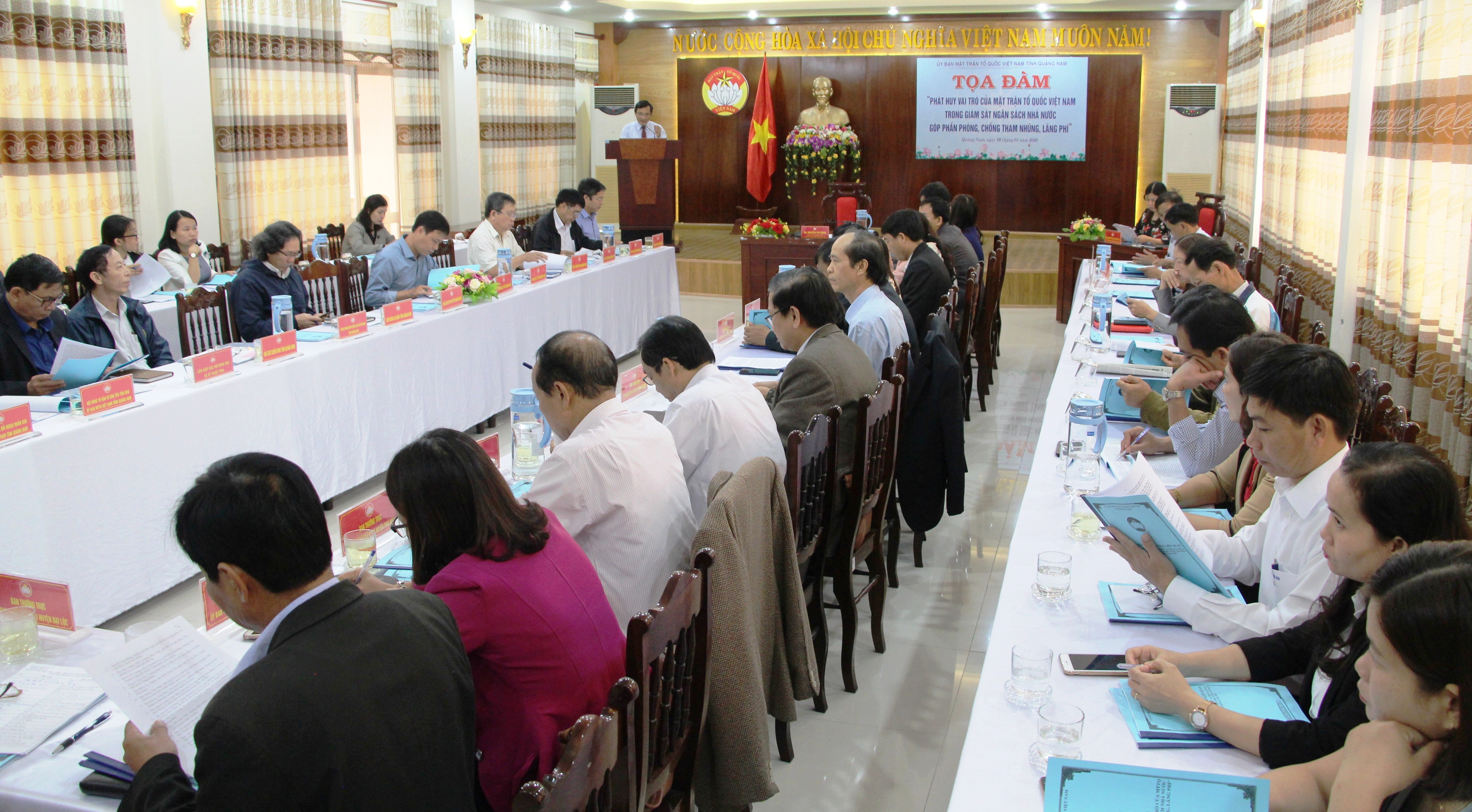 Tại buổi tọa đàm, đại biểu đã nghe 8 báo cáo tham luận của Ban Kinh tế - Ngân sách HĐND tỉnh; Thanh tra tỉnh và Ban Thường trực Ủy ban MTTQ Việt Nam cơ sở và nhiều ý kiến phát biểu thảo luận phân tích rõ nguyên nhân, thuận lợi, khó khăn hạn chế và chia sẻ kinh nghiệm tổ chức thực hiện tại đơn vị, địa phương mình về công tác giám sát ngân sách. Đồng thời đề xuất kiến nghị các nhóm giải pháp để MTTQ Việt Nam, các đoàn thể chính trị - xã hội thực hiện tốt việc giám sát trong thời gian tới.