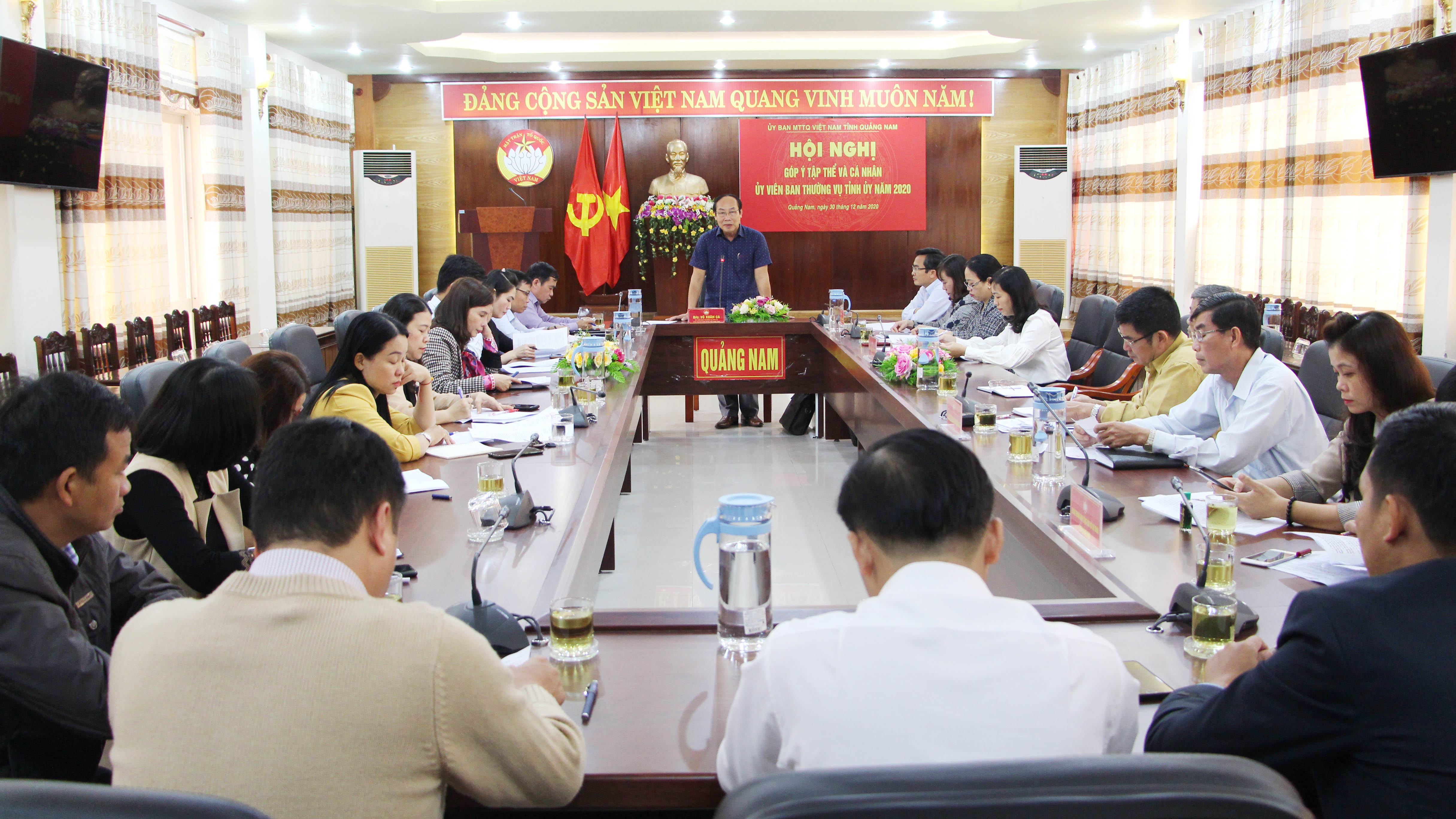 Chiều ngày 30/12/2020, Ban Thường trực Ủy ban MTTQ Việt Nam tỉnh tổ chức Hội nghị góp ý tập thể và cá nhân Uỷ viên Ban Thường vụ Tỉnh ủy năm 2020. Tham dự Hội nghị có các đồng chí trong Ban Thường trực Uỷ ban MTTQ Việt Nam tỉnh, các đồng chí trong Ban Thường vụ các tổ chức chính trị- xã hội tỉnh. Đồng chí Võ Xuân Ca- UVBTV Tỉnh ủy, Chủ tịch Uỷ ban MTTQ Việt Nam tỉnh chủ trì Hội nghị.