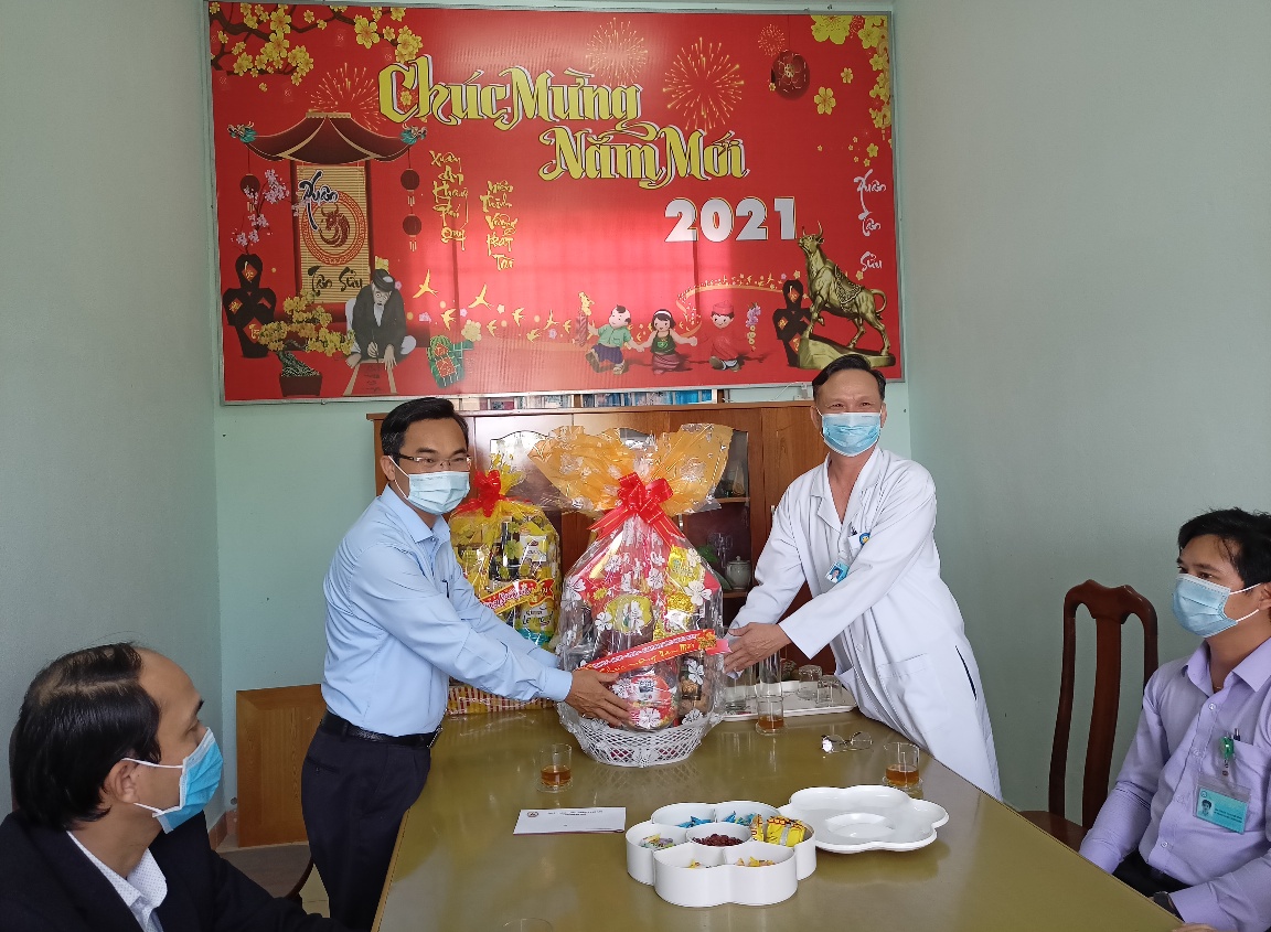Thay mặt Tỉnh ủy-HĐND-UBND-UBMTTQVN tỉnh, ông Nguyễn Phi Hùng - Phó Chủ tịch Thường trực Ủy ban MTTQ Việt Nam tỉnh gửi lời chúc mừng năm mới an khang thịnh vượng, vạn sự như ý đến toàn thể cán bộ, nhân viên hai bệnh viện; đồng thời ghi nhận và đánh giá cao những nỗ lực, phấn đấu của đội ngũ y bác sĩ bệnh viện trong công tác khám, chữa bệnh năm 2020 và thực hiện tốt công tác phối hợp trong điều trị, cũng như kiểm soát các dịch bệnh Covid-19. Ông chúc cán bộ, nhân viên, y bác sỹ trong bệnh viện dồi dào sức khỏe, đoàn kết; tiếp tục phát huy những thành quả đã đạt được; không ngừng nâng cao chuyên môn, nâng cao y đức, chất lượng khám điều trị, đáp ứng tốt nhu cầu khám điều trị bệnh cho nhân dân trong và ngoài tỉnh.