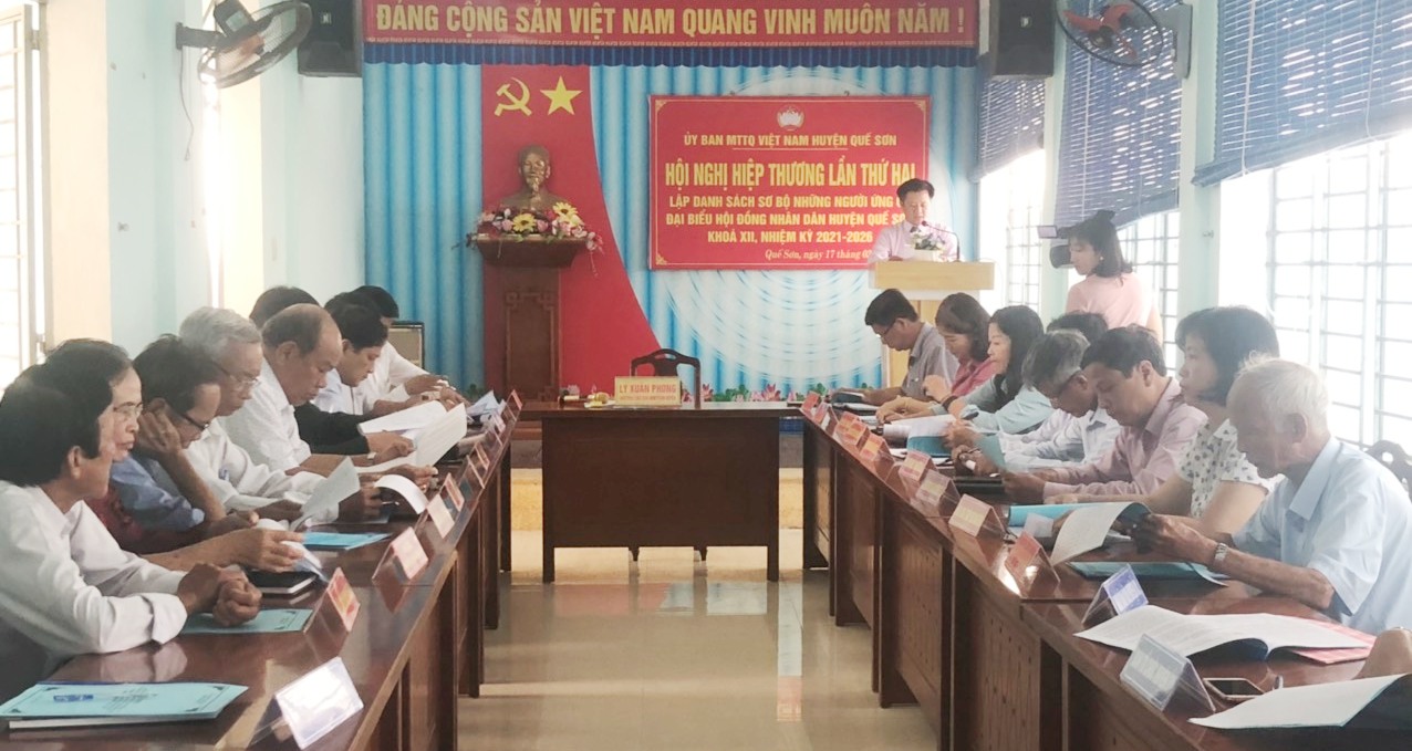 Hội nghị hiệp thương lần thứ hai đã thống nhất danh sách sơ bộ 60 người ứng cử đại biểu HĐND huyện Quế Sơn khoá XII, nhiệm kỳ 2021 – 2026 (trong đó: nữ 27/60, tỷ lệ 45%; trẻ tuổi 27/60, tỷ lệ 45%; ngoài Đảng 8/60, tỷ lệ 13,3%). Tại Hội nghị cũng đã thông qua dự thảo Kế hoạch tổ chức lấy ý kiến nhận xét và tín nhiệm của cử tri nơi cư trú đối với người ứng cử đại biểu HĐND huyện khoá XII, nhiệm kỳ 2021 - 2026.